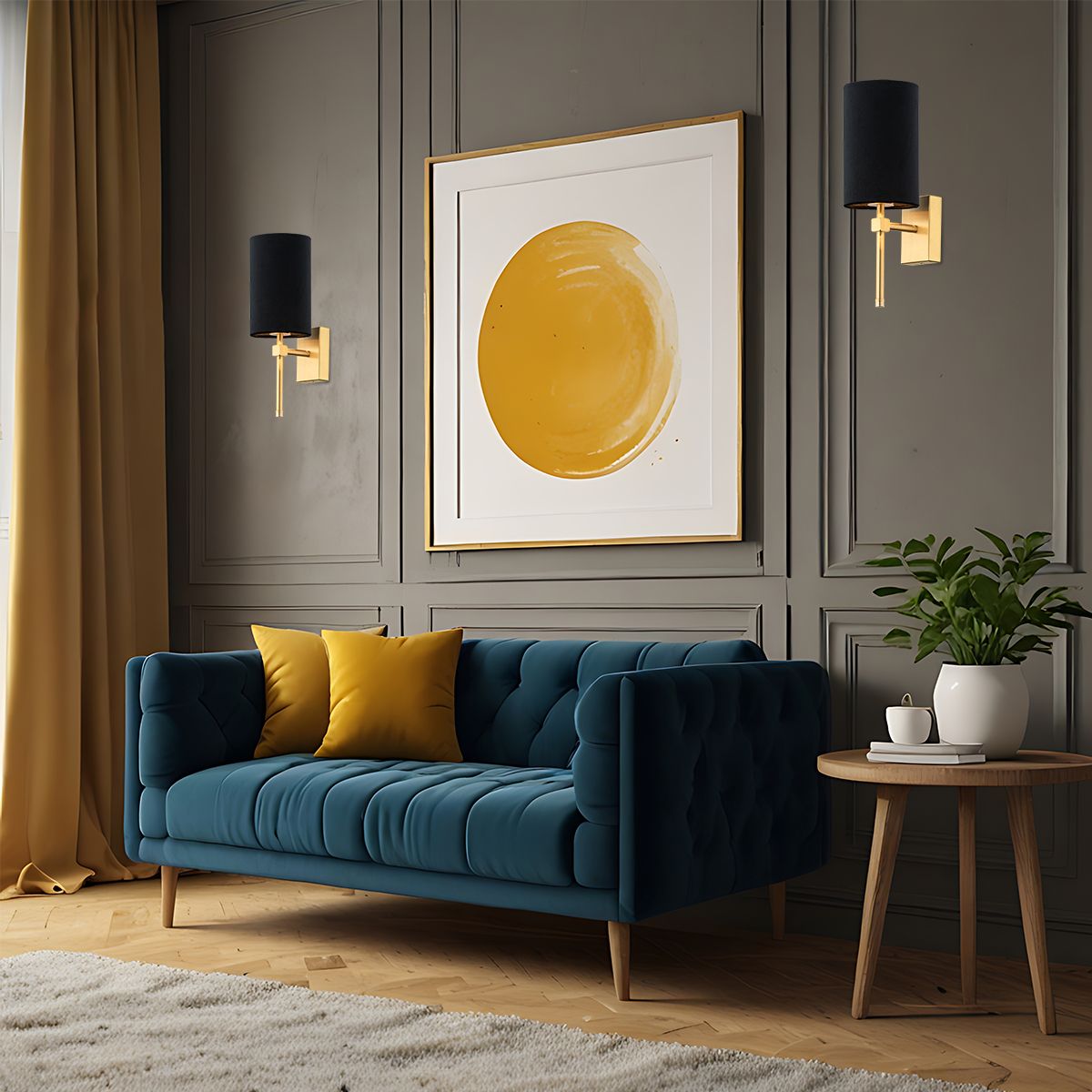 Die Lampenserie Abruzzo ist ein Angebot für Menschen, die Eleganz schätzen. Gebürstetes Messing und ein Lampenschirm aus Velours sind eine Kombination, die perfekt zu einem Schlafzimmer im Glamour-Stil oder einem Arbeitszimmer passt.