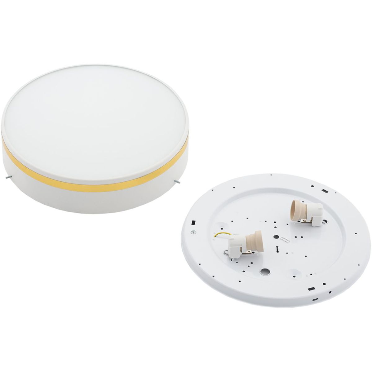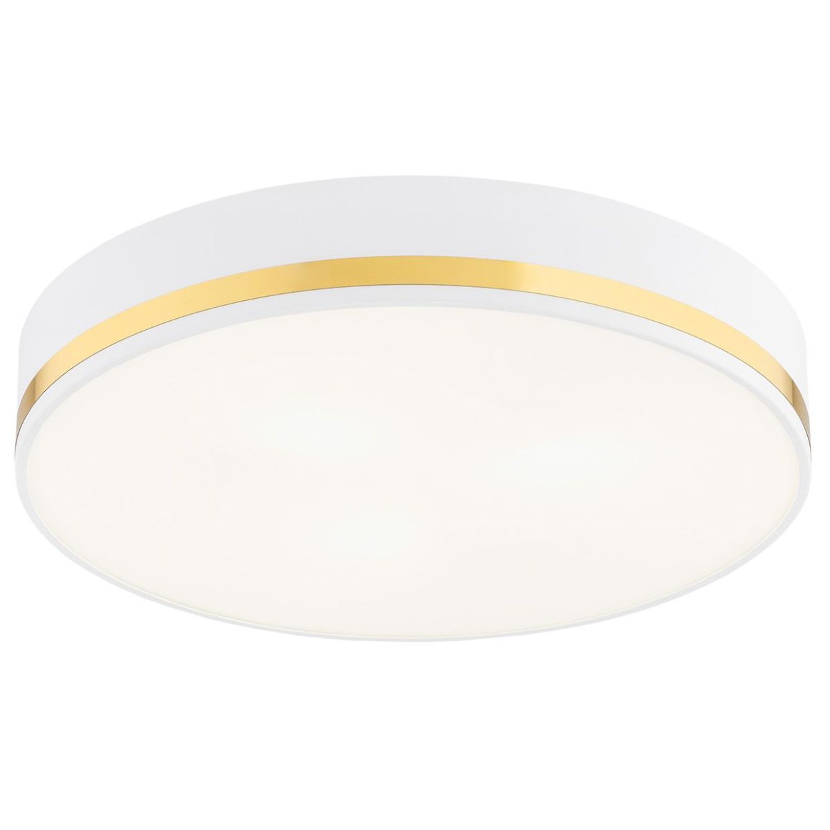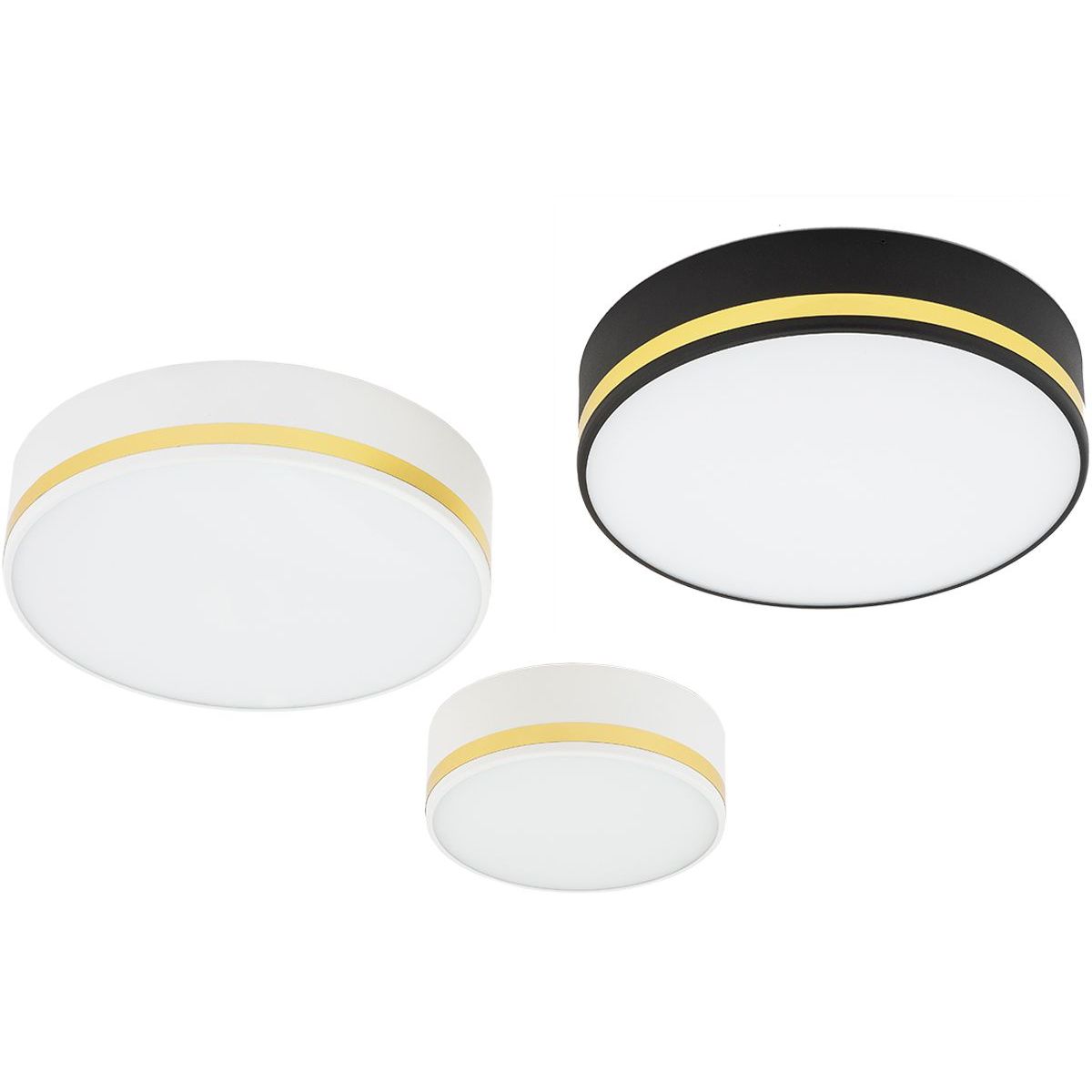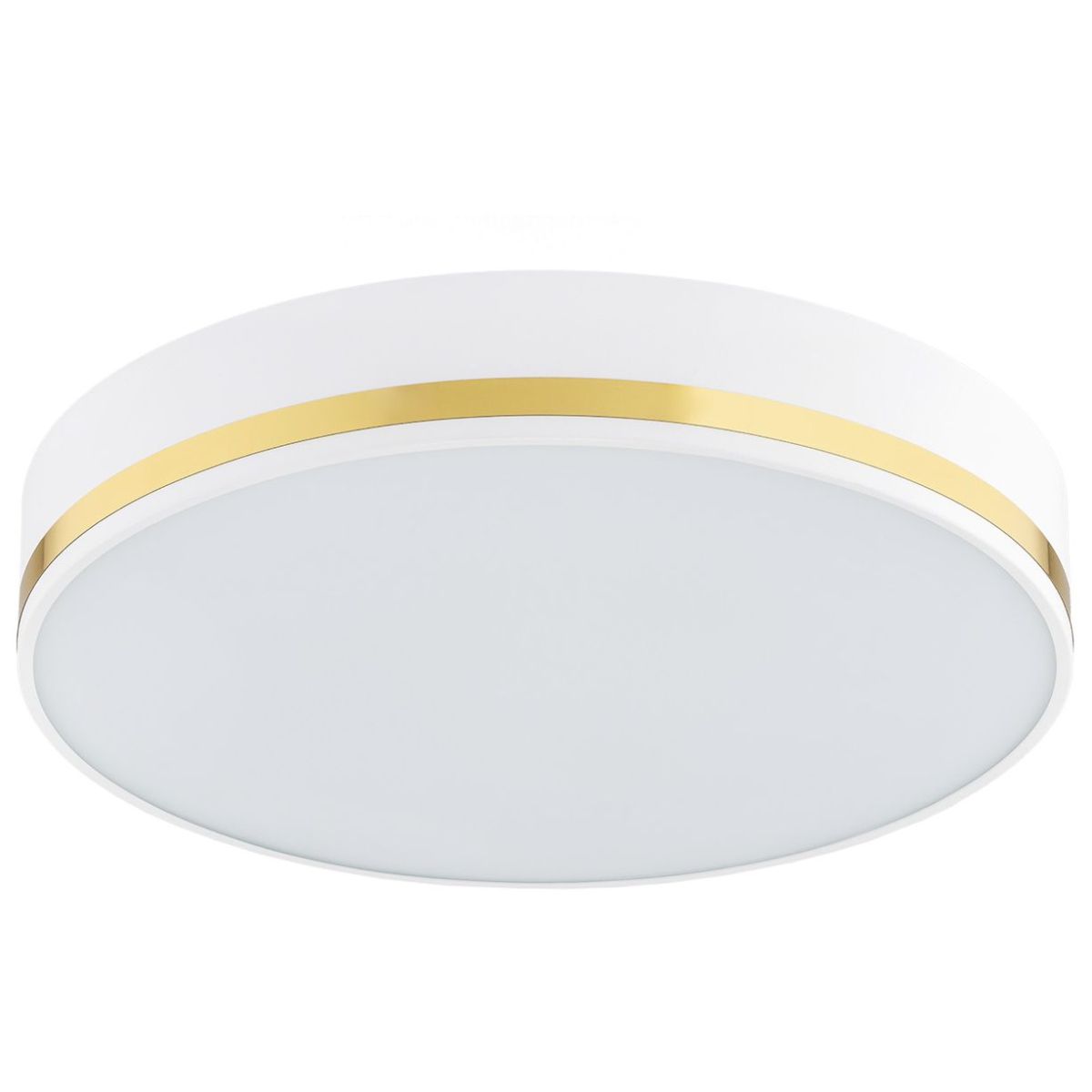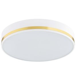 Praktische und elegante Deckenleuchte. Weiße Deckenlampe. Diese Deckenlampe zeichnet sich durch goldene Verzierungen aus. Die AMORE-Lampen ähneln in ihrer Funktionalität den typischen runden Deckenleuchten, zeichnen sich jedoch durch ihren einzigartigen Stil aus. Neuheit 2022 aus dem Angebot des polnischen Lampenherstellers ARGON.