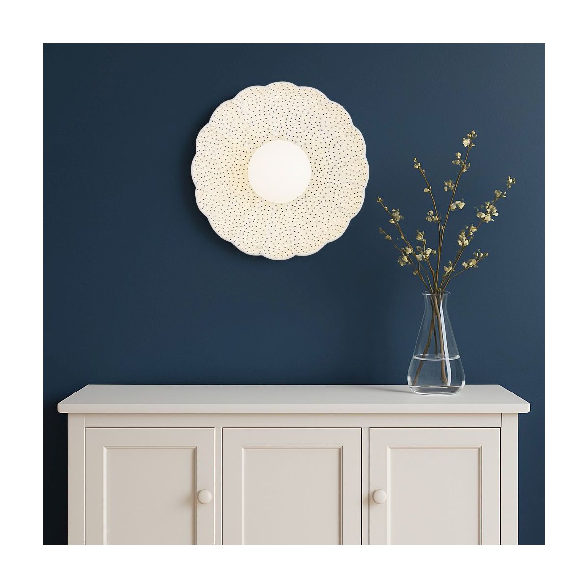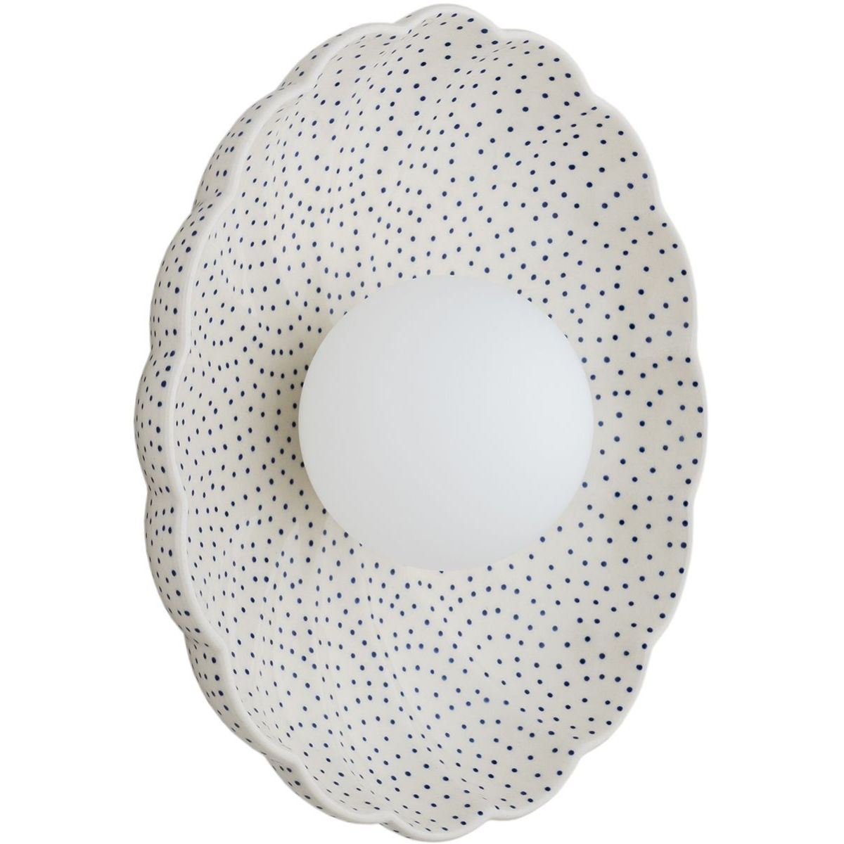 - Farbe: Opal matt, cremefarben, verziert mit zarten Stempeln in tiefem Kobaltblau - Marineblau