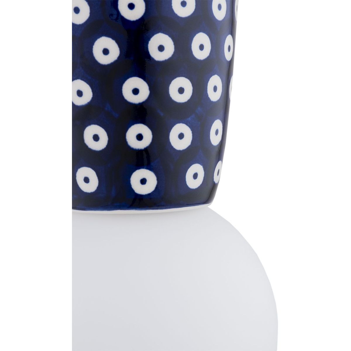 - Farbe: Opal matt, tiefes Kobaltblau – Granat mit weißen Stempeln verziert