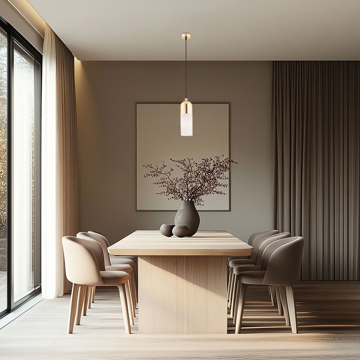 Eine moderne und dezente Lampe mit einem schönen Lampenschirm in Opal-Matt. Der Minimalismus dieser Serie ist ein absoluter Vorteil. Die Kombination aus Metall und Glas ist nicht nur die ideale Beleuchtung für Räume, sondern auch eine perfekte Dekoration.