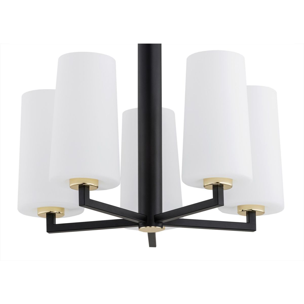 Schwarz und Weiß sind eine perfekte Kombination, insbesondere bei klassischen Formen. Die Hängelampe CAMELOT PLUS ist ein äußerst eleganter Kronleuchter, eine echte Zierde für jeden Innenraum. Die Glaslampenschirme werden hier mit einem schwarz lackierten Gestell und kleinen goldenen Akzenten kombiniert.