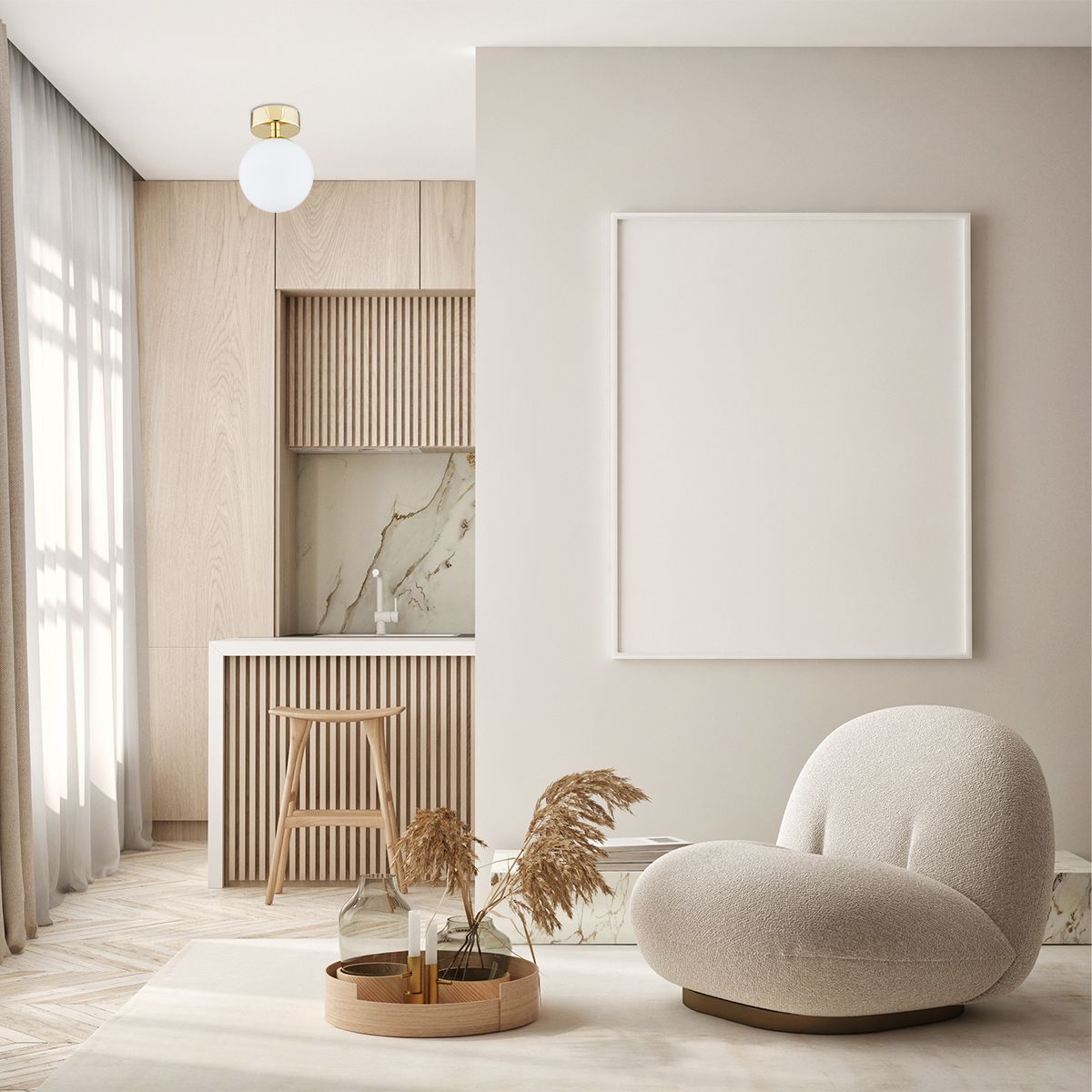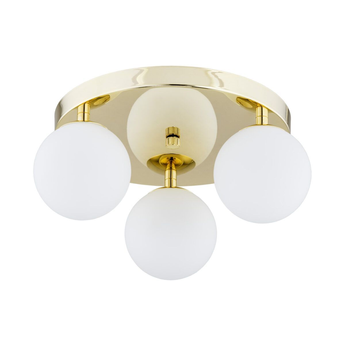 Die Flavio-Kollektion umfasst goldfarbene Lampen, bei denen die Lichtquelle unter einem milchig-weißen Glaslampenschirm in Kugelform verborgen ist. Trotz ihrer schlichten Form können sie eine ideale Ergänzung Ihrer Beleuchtung sein. Die goldene Farbe passt perfekt zu eleganten und glamourösen Innenräumen.