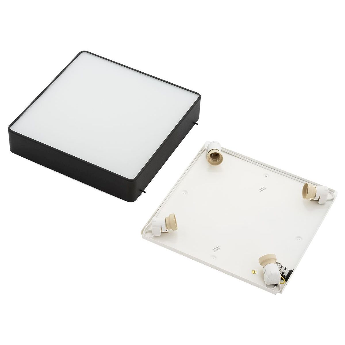 Eine Kollektion klassischer Deckenleuchten, die Ihre Beleuchtungskollektion zu Hause auf einfache Weise ergänzen. Das Licht wird von einem quadratischen Metallrahmen und einem milchigen Glas eingefangen. Eine moderne und zugleich traditionelle Deckenleuchte, die an jeder Decke montiert werden kann.