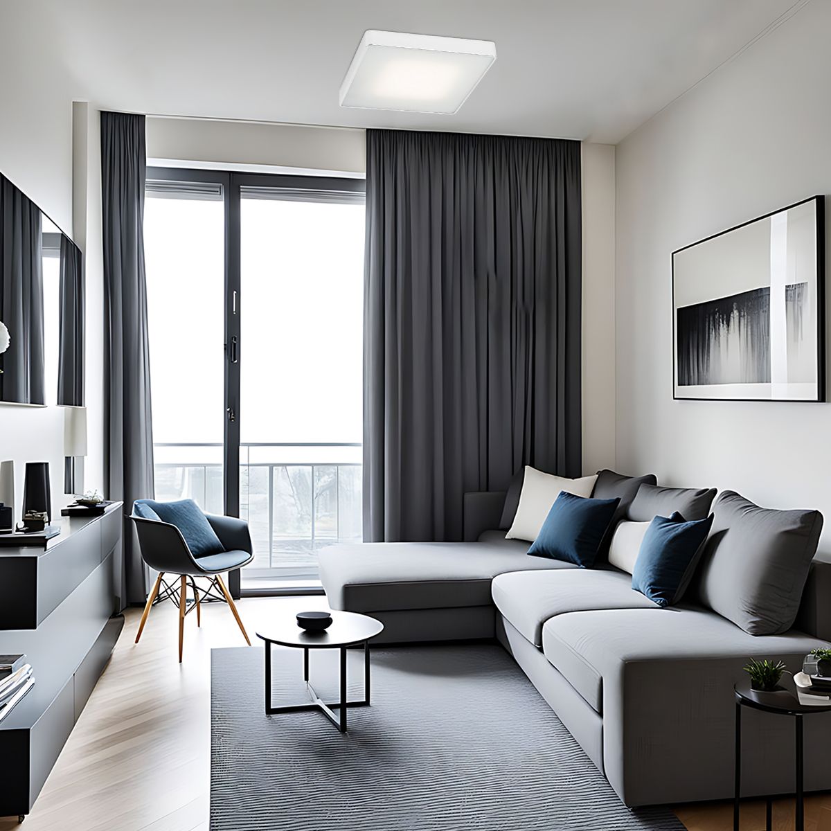 Eine Kollektion klassischer Deckenleuchten, die Ihre Beleuchtungskollektion zu Hause auf einfache Weise ergänzen. Das Licht wird von einem quadratischen Metallrahmen und einem milchigen Glas eingefangen. Eine moderne und zugleich traditionelle Deckenleuchte, die an jeder Decke montiert werden kann.