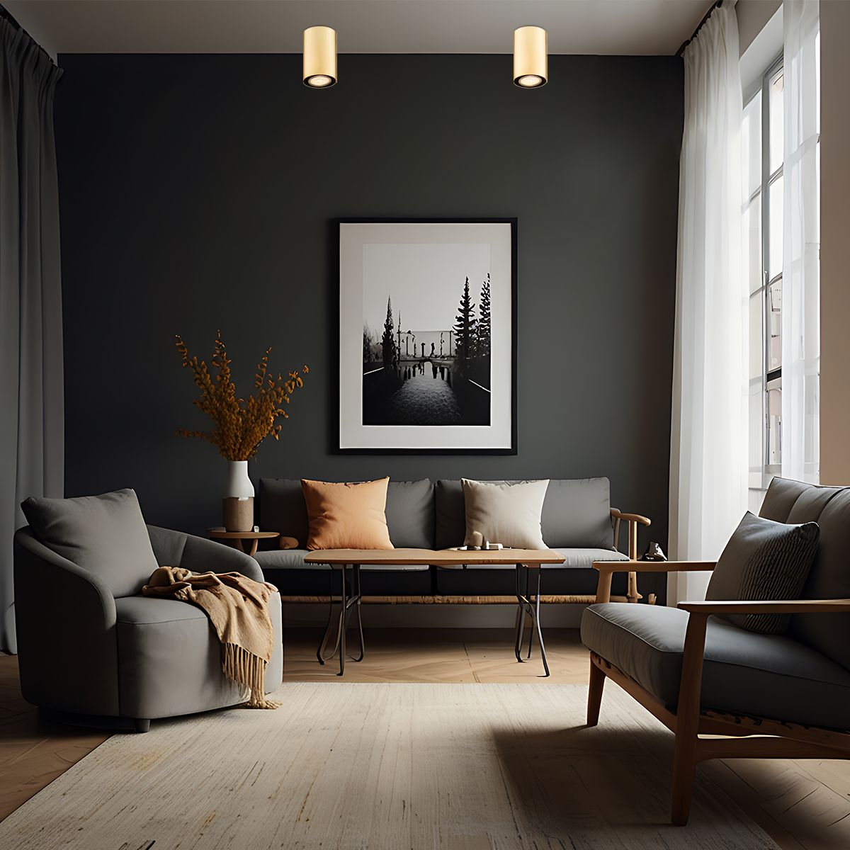 Die Serie Tyber Plus ist eine neue Interpretation der Lampen, die uns schon seit einigen Jahren begleiten. Dieses Mal wurde auf eine goldene Ringfarbe gesetzt. Sie passt perfekt zu Interieurs im Glamour-Stil, auch zu anderen Lampen in Goldfarbe.