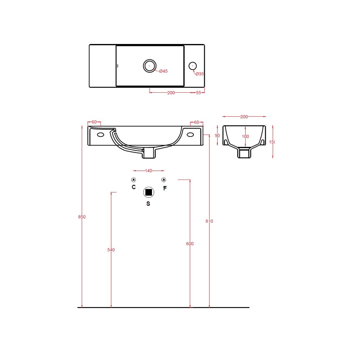 Art Ceram Brick Waschbecken 54x20 cm rechteckig Klassisch weiß LML00201;00