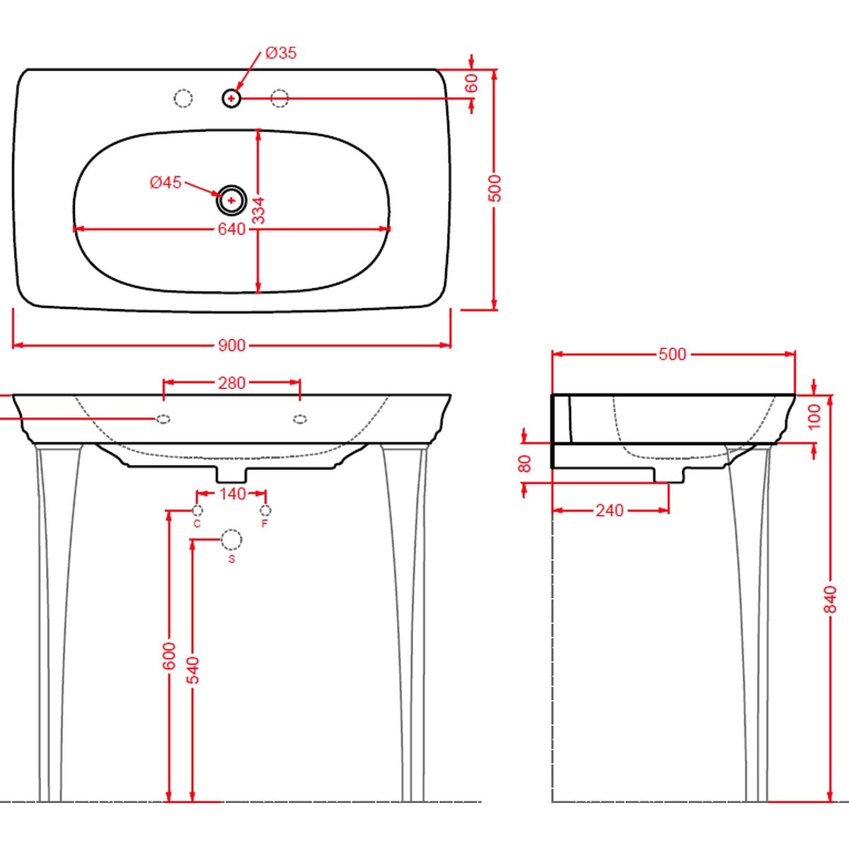 Art Ceram Civitas Waschbecken 90x50 cm rechteckig Klassisch weiß CIL00201;00