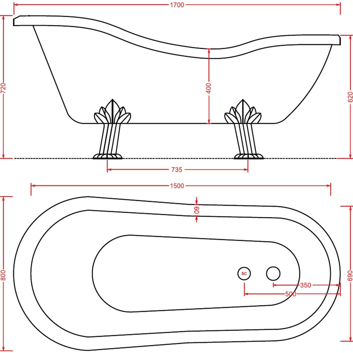 Der Preis gilt für die Badewanne mit Füßen und Ablauf- und Überlaufgarnitur in Weiß.