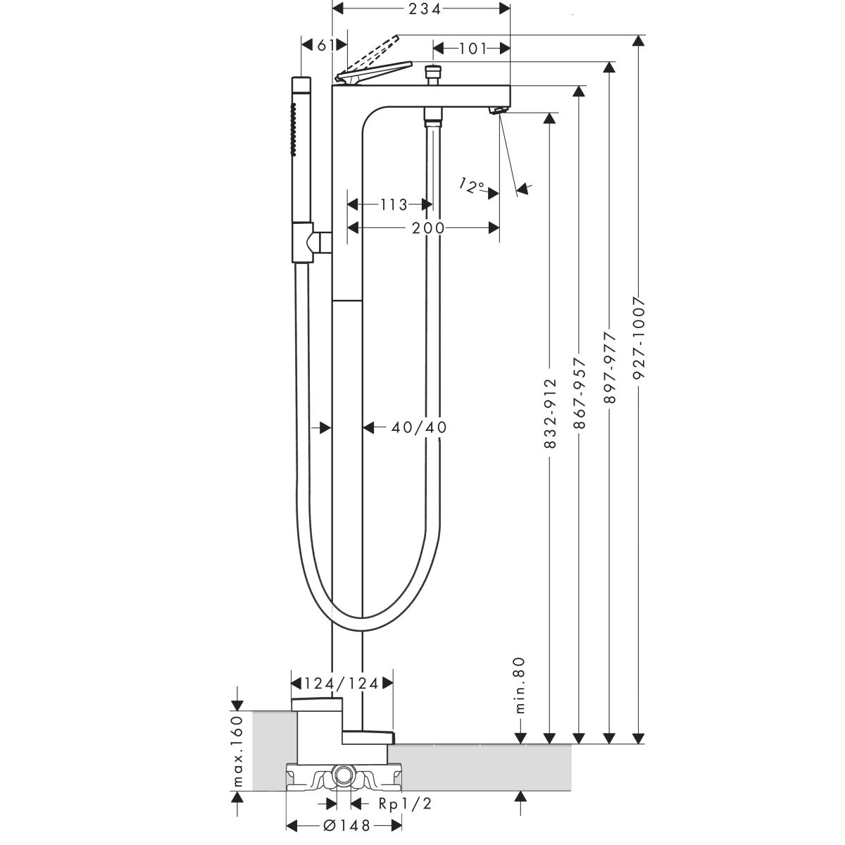 - Im Lieferumfang enthalten: Einhebel-Wannenbatterie freistehend, Handbrause, Brauseschlauch, Duschhalter