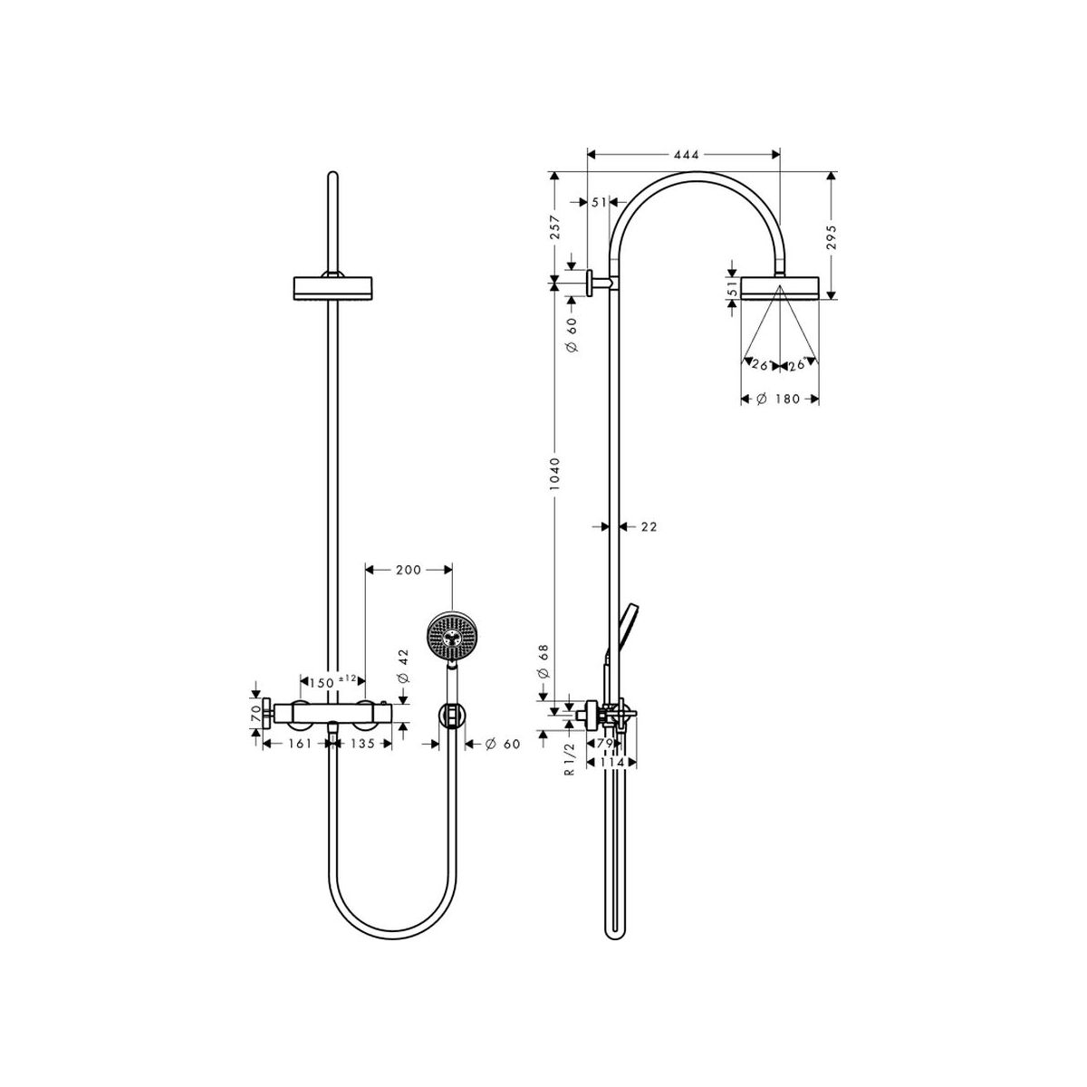 - Länge des Duscharms: 44,4 cm
