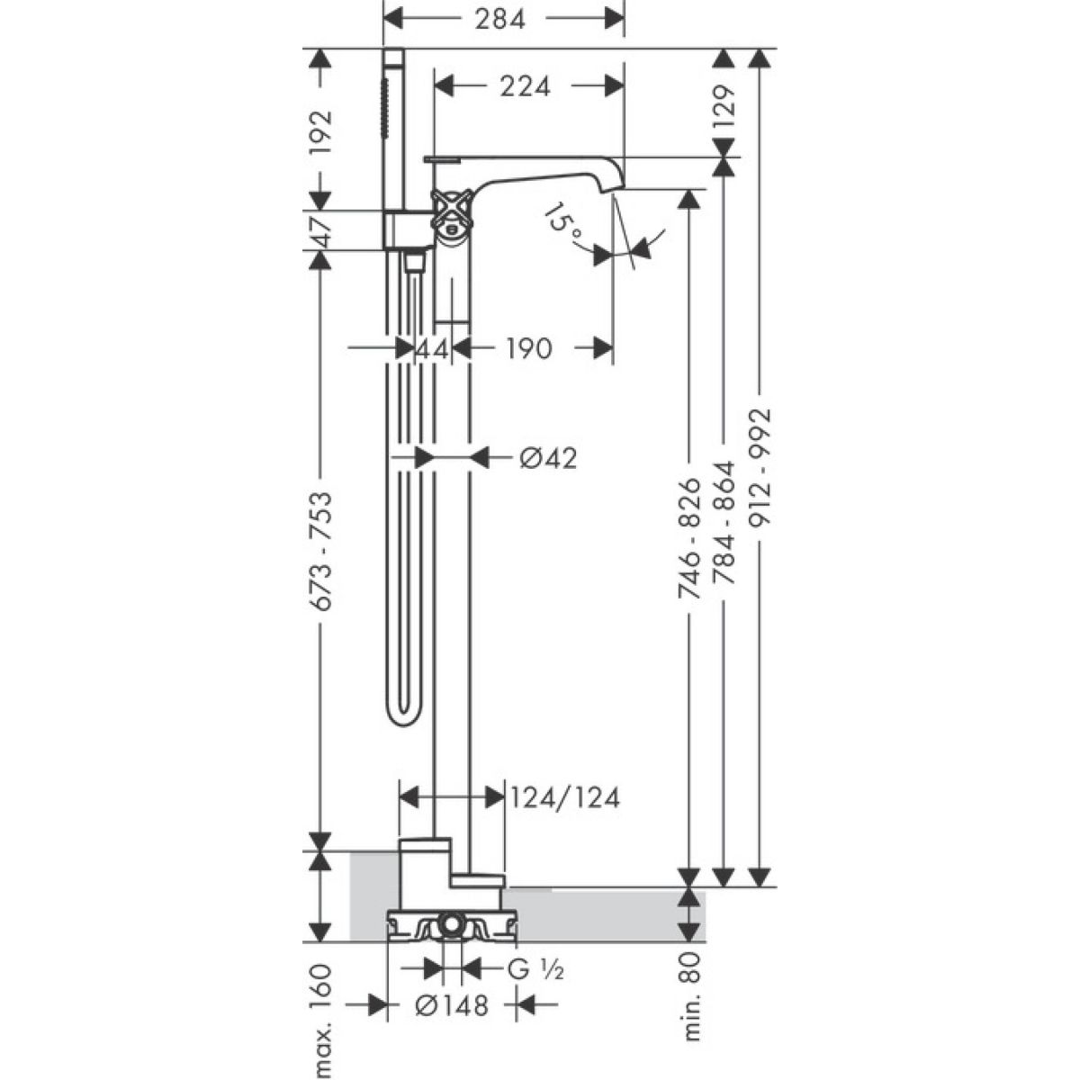 Axor Citterio E Badewannen- und Duscharmatur freistehend mit Thermostat chrom 36416000