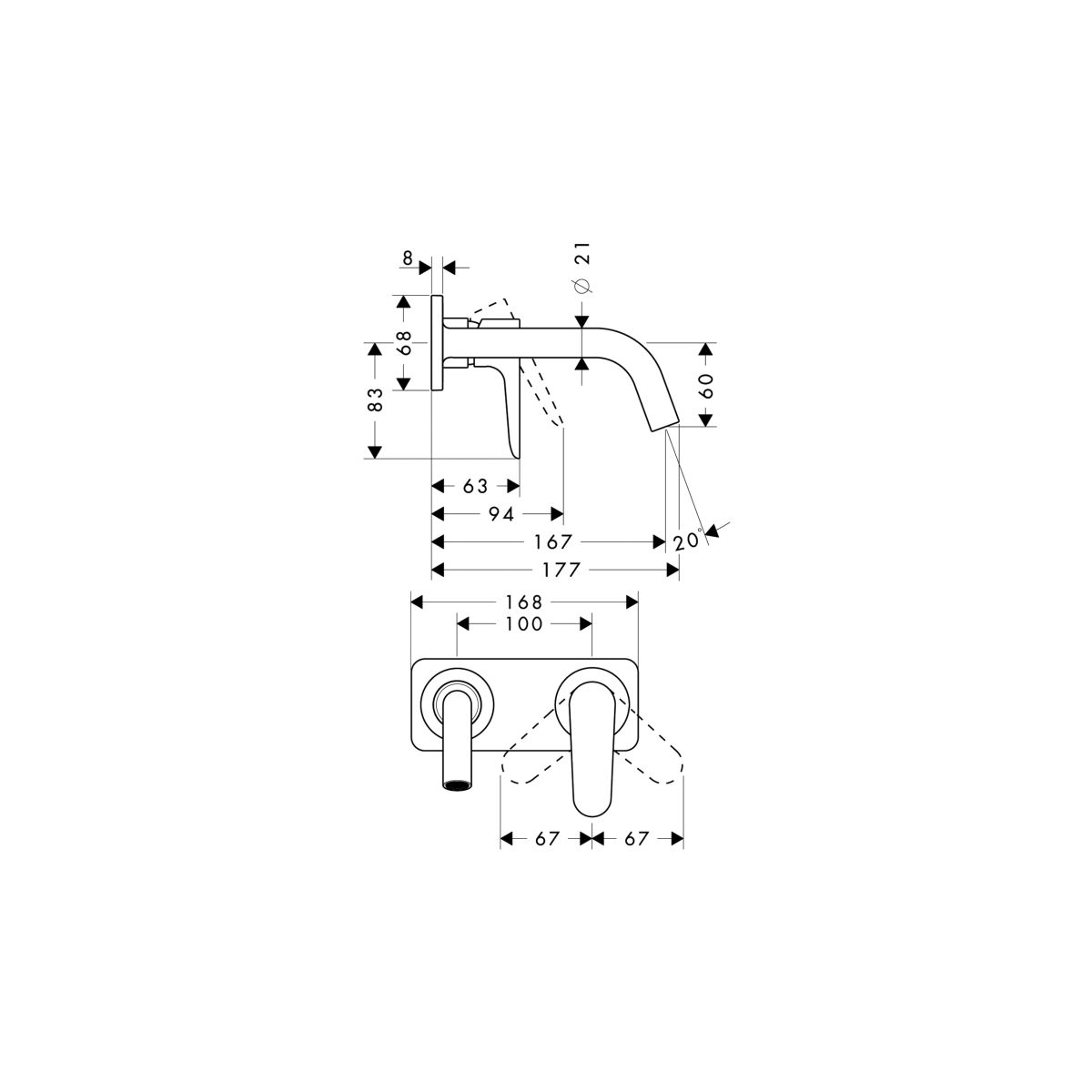 - mit Platte und Auslauf 167 mm