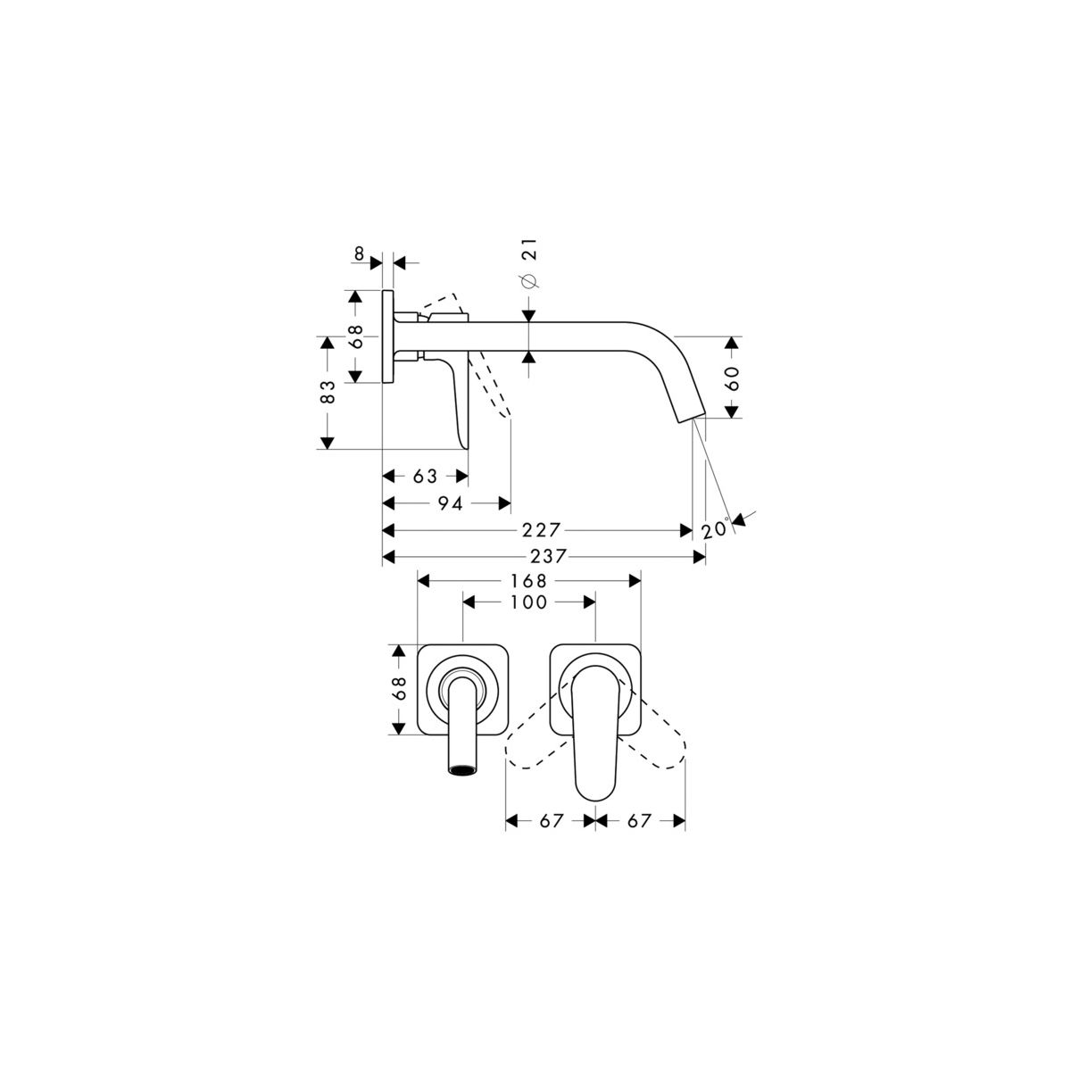 - mit Rosetten und Auslauf 227 mm