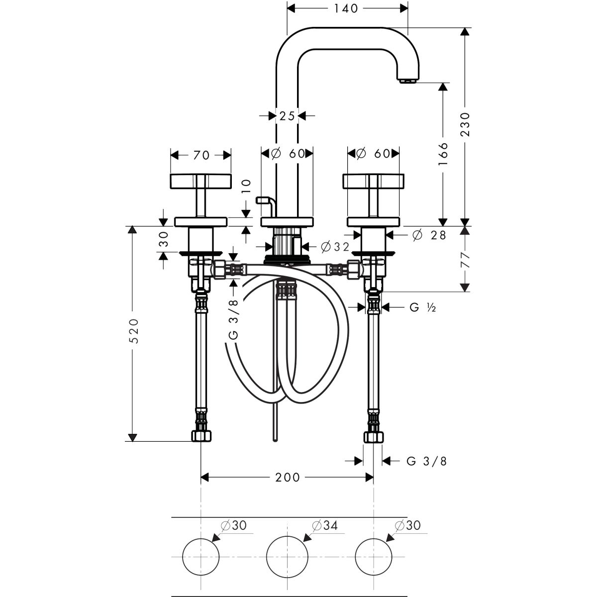 - Bestehend aus: 3-Loch-Waschtischarmatur, Ablaufgarnitur