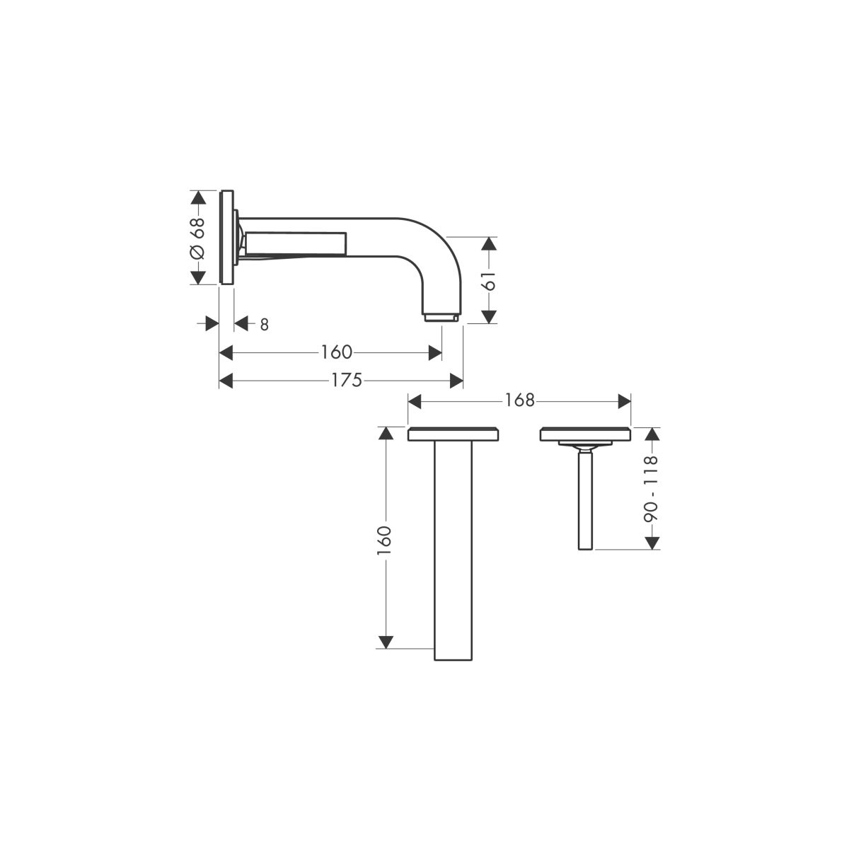 - mit Rosetten und kurzem Auslauf mit einer Länge von 160 mm