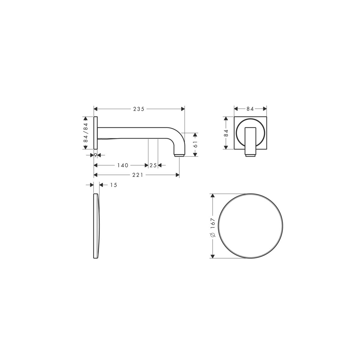 - Bei Aufsatzwaschbecken einen Abstand von 140 mm einhalten (Mitte des Auslaufs/hintere Kante des Waschbeckens)