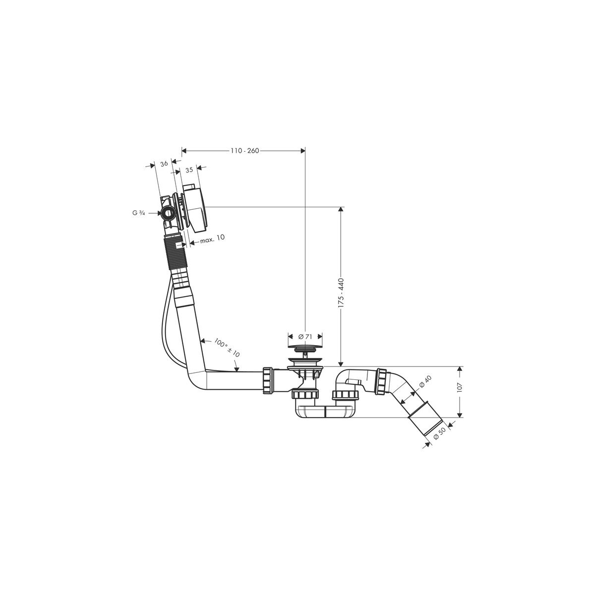 Axor Exafill Badewannensiphon chrom 58307000