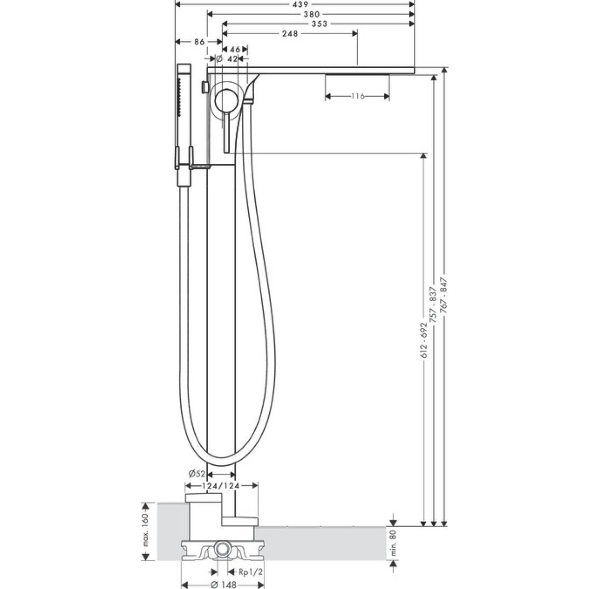 Axor Massaud Badewannen- und Duscharmatur freistehend chrom 18450000
