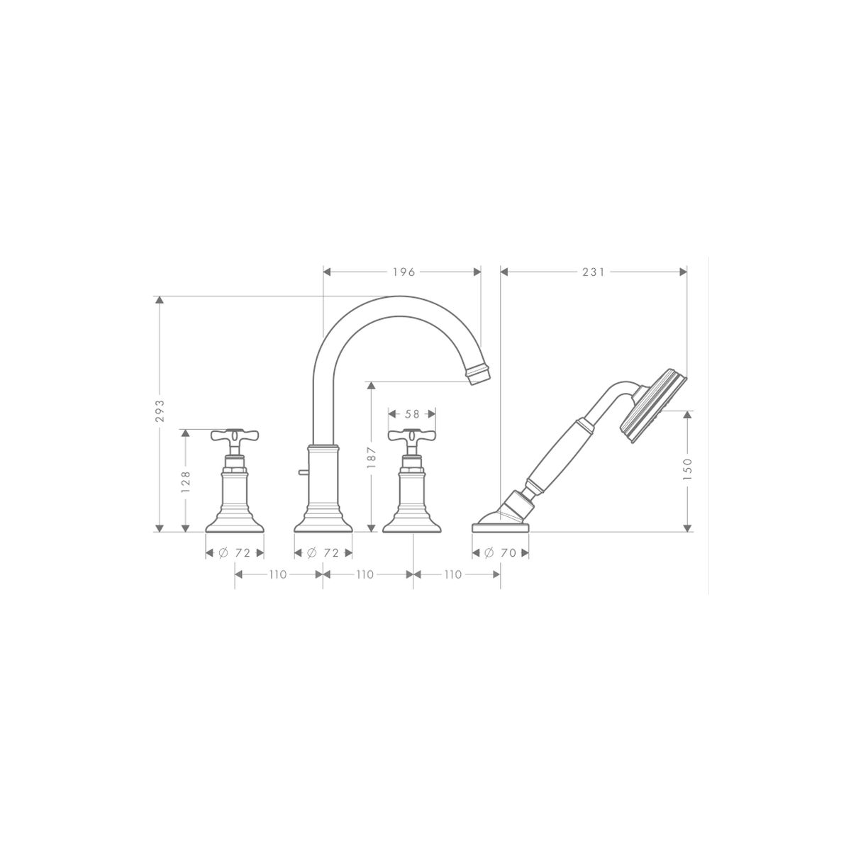 - Im Lieferumfang enthalten: Halterungen, Wannenauslauf