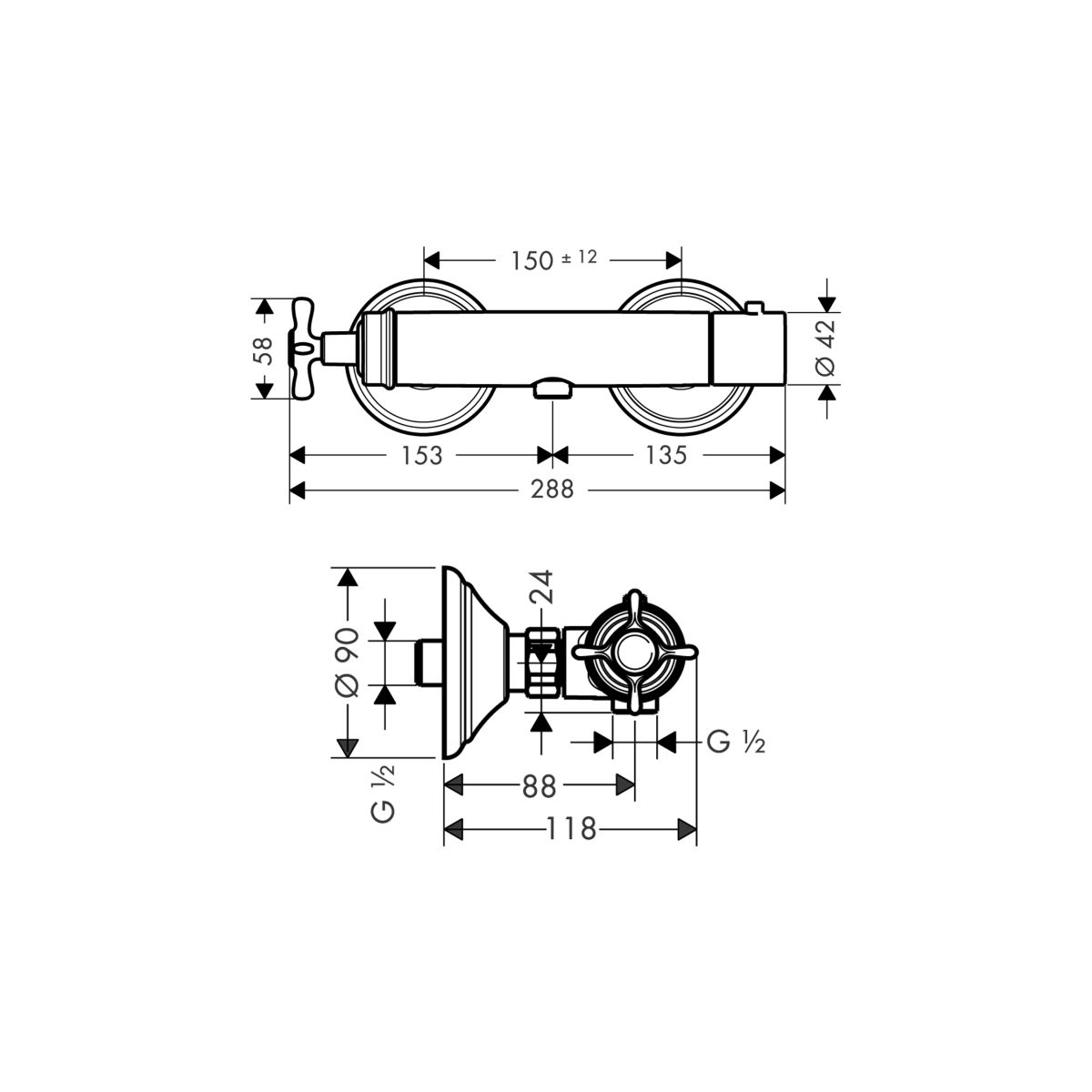 - Thermostatbatterie mit Kreuzgriff