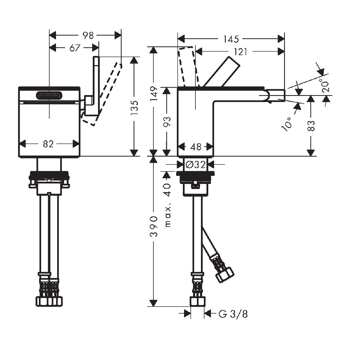 - Anschlussart: G ⅜-Anschlüsse