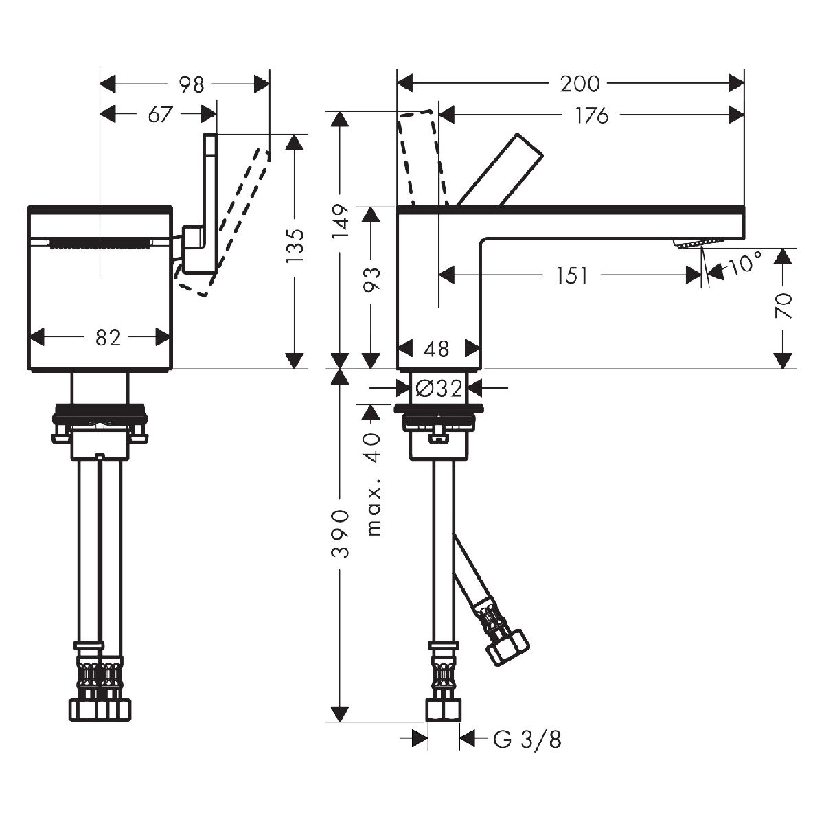 - Anschlussart: G ⅜-Anschlüsse
