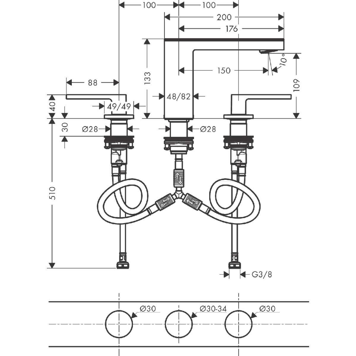 - Bestehend aus: 3-Loch-Waschtischarmatur, Fliese, Ablaufgarnitur
