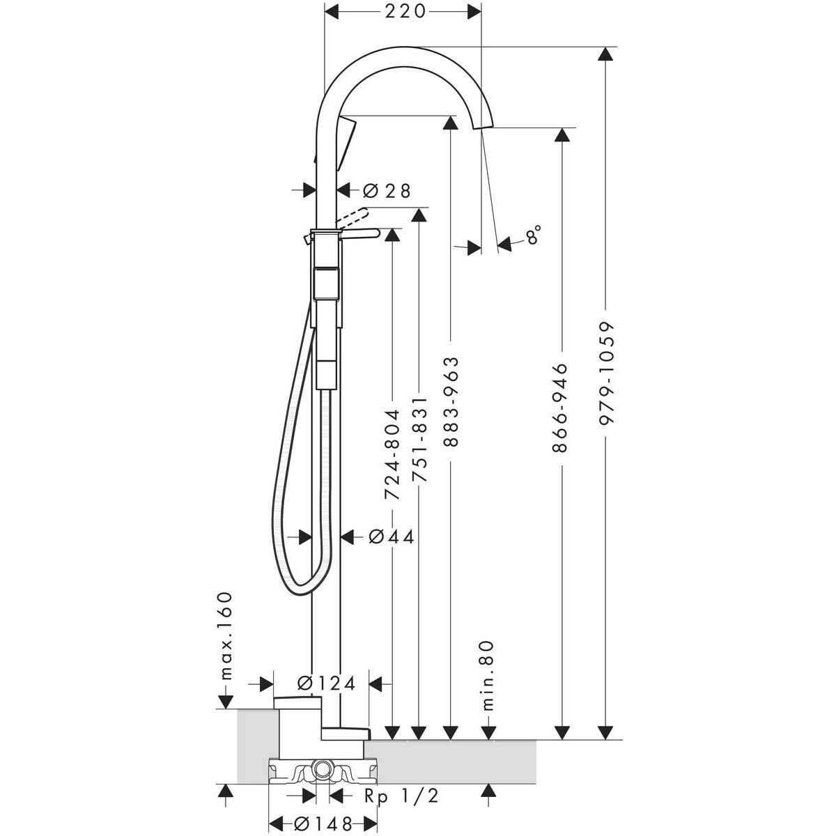 Axor One Badewannen- und Duscharmatur freistehend || 48440330