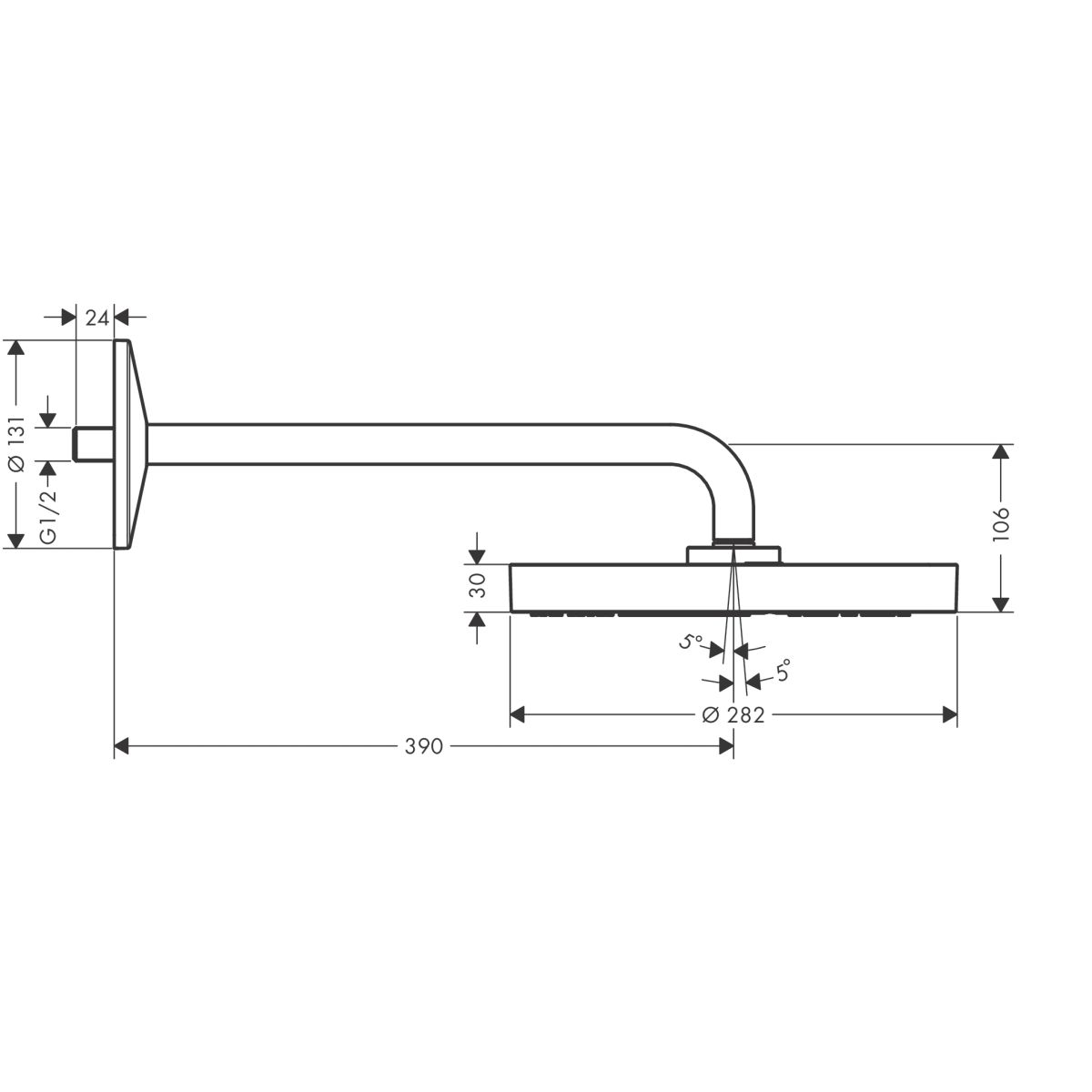 Axor One Kopfbrause mit Arm 28x28 cm rund stahl 48491800