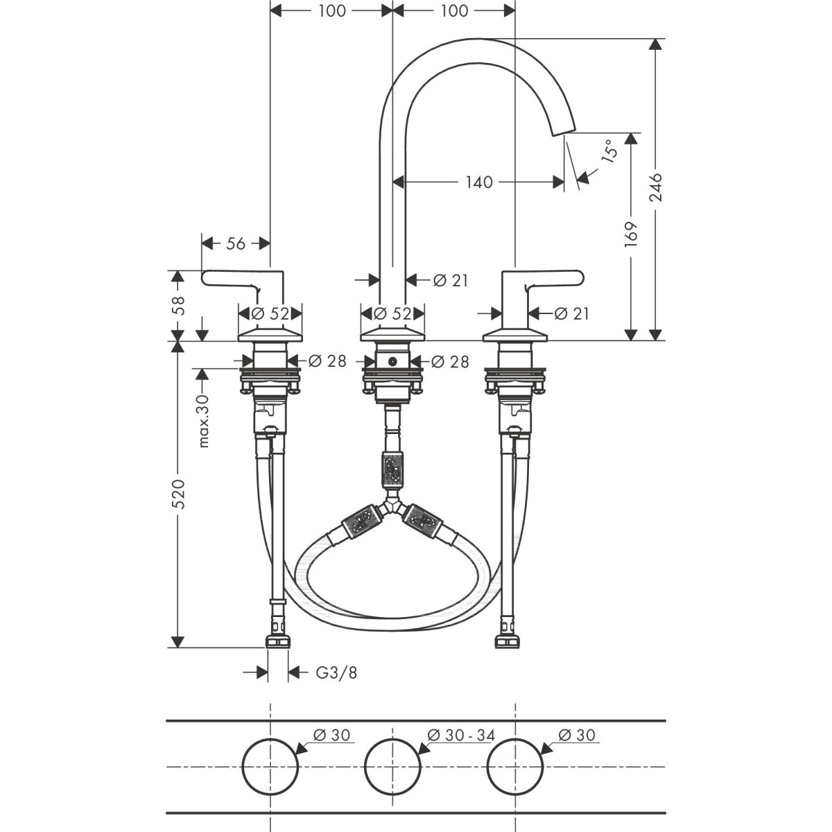 - 3-Loch-Waschtischarmatur, Ablaufgarnitur