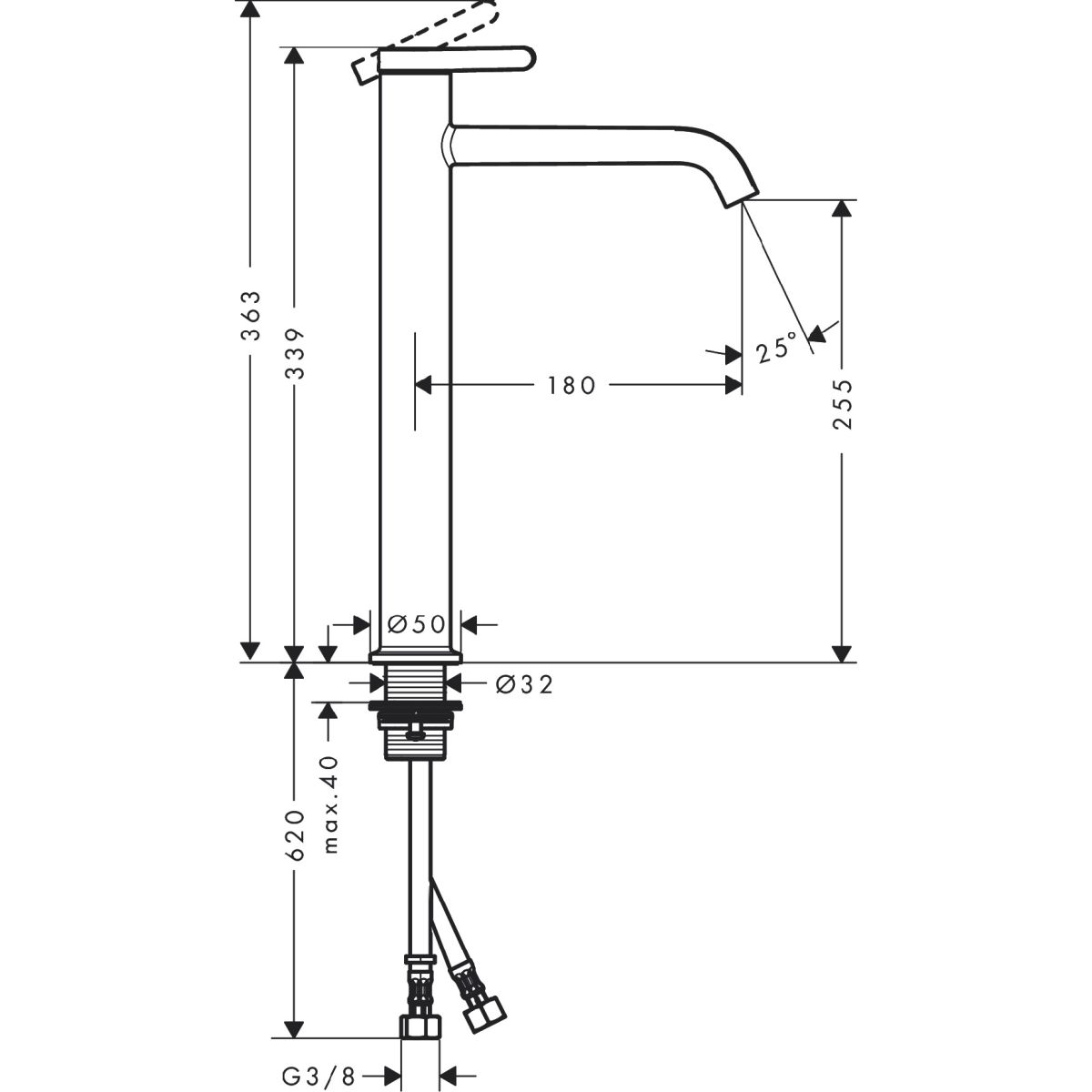 - Auslaufhöhe: 255 mm