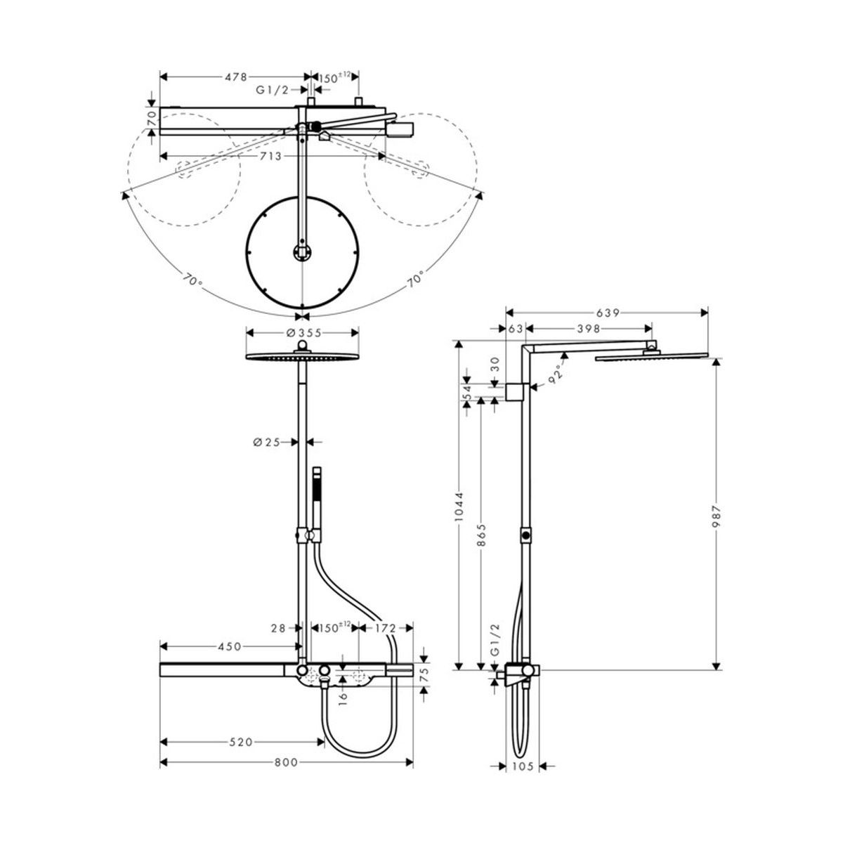 - Inbegriffen: Batterie mit Schalter, Duschkopf, Duschkopf, Duschschlauch, Duschstange