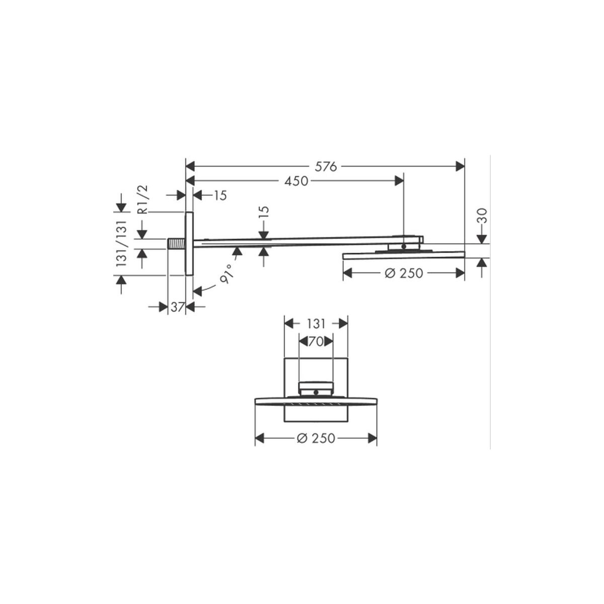 Axor ShowerSolutions Kopfbrause mit Arm 25x25 cm rund || 35284340
