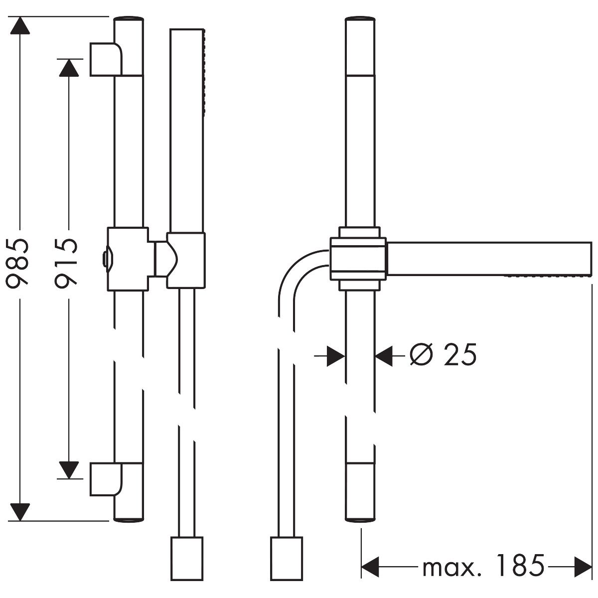 - Durchmesser der Duschstange: 25 mm