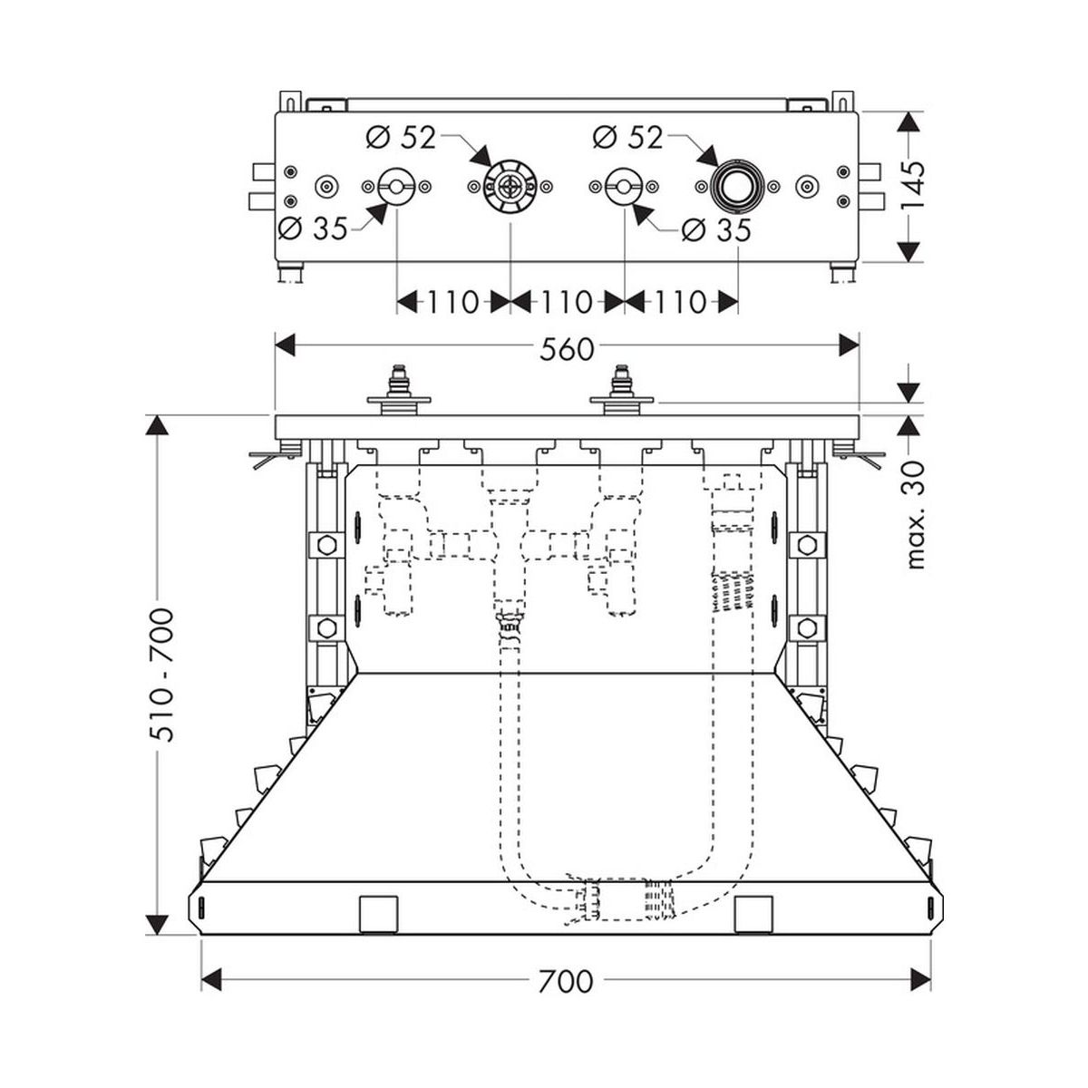 - zur Montage auf einem Fliesensockel