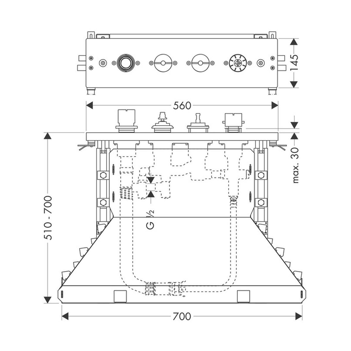 - zur Montage auf einem Fliesensockel