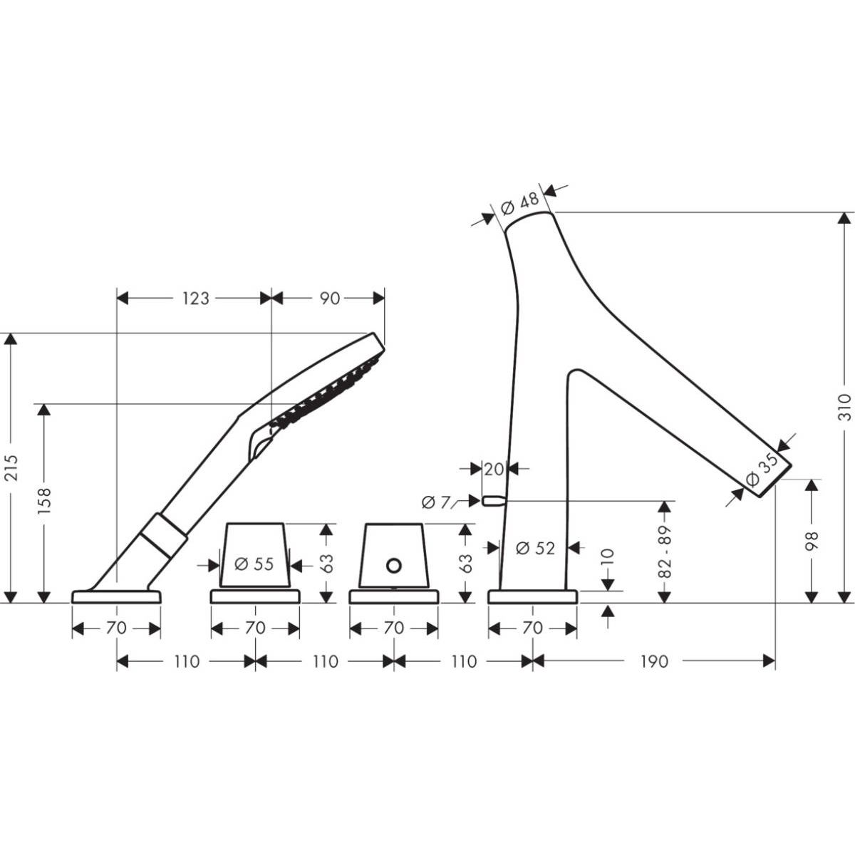 - im Lieferumfang enthalten: Halterungen, Thermostateinsatz, Absperrventil, Wannenauslauf mit Umsteller