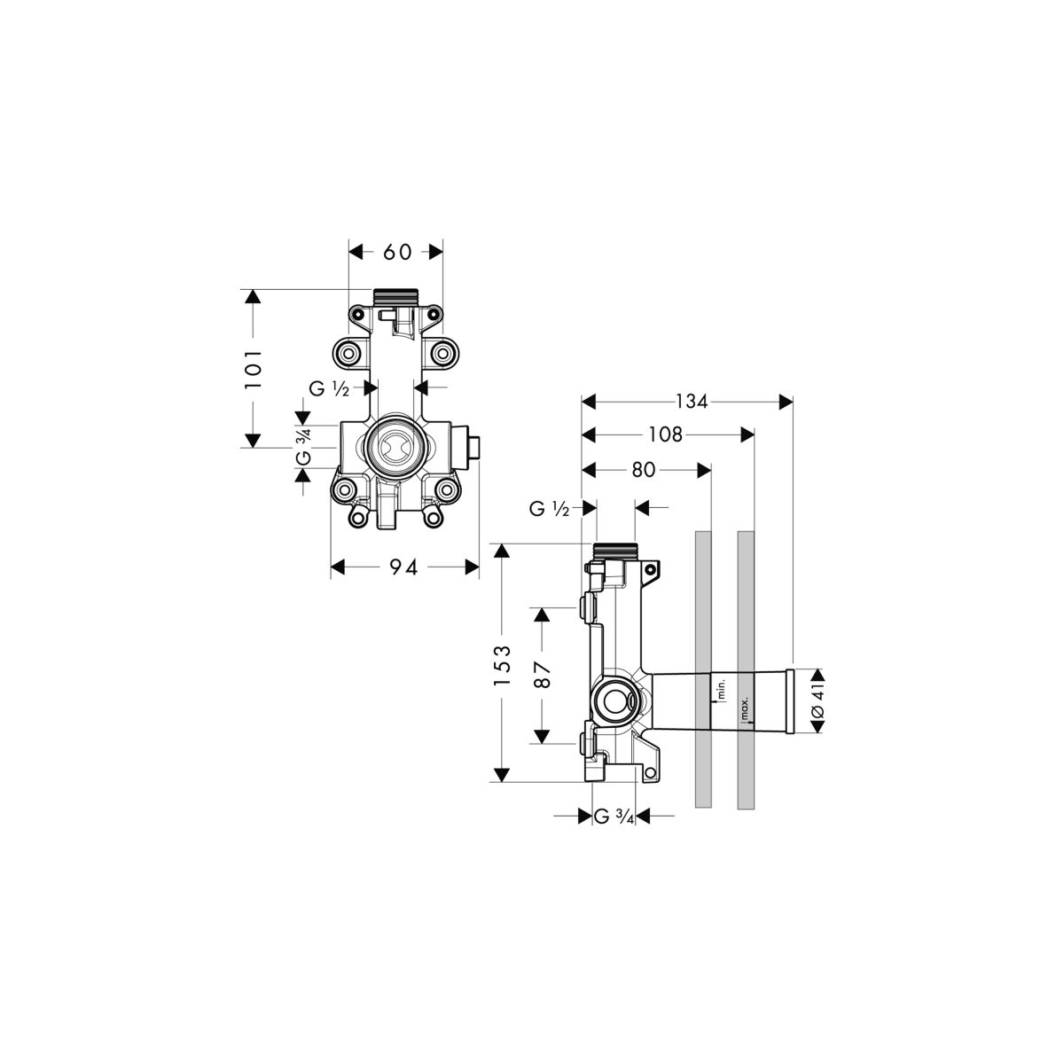 - in kombinierten Anlagen als Wasserleitung und zur Erleichterung der Montage, Anschlüsse links und rechts