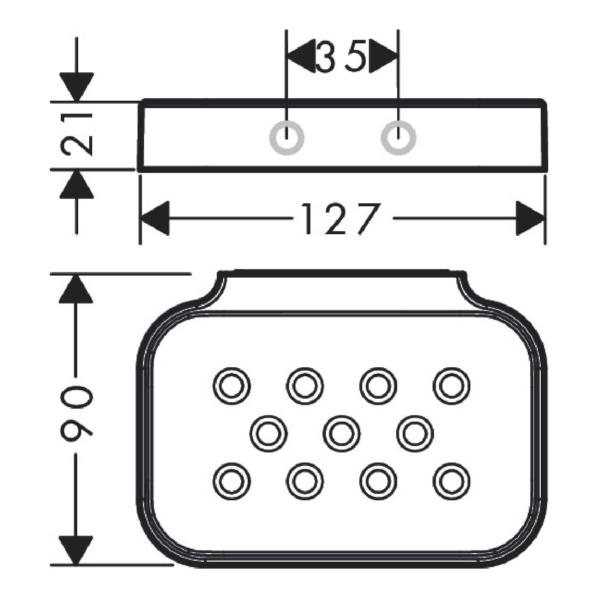 - Abstand zwischen den Bohrlöchern: 35 mm