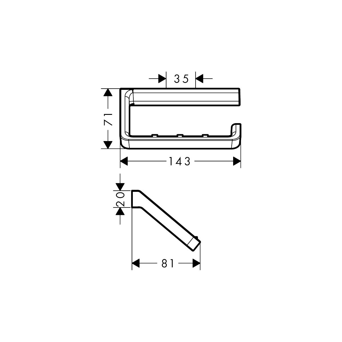 - Abstand zwischen den Bohrlöchern: 35 mm