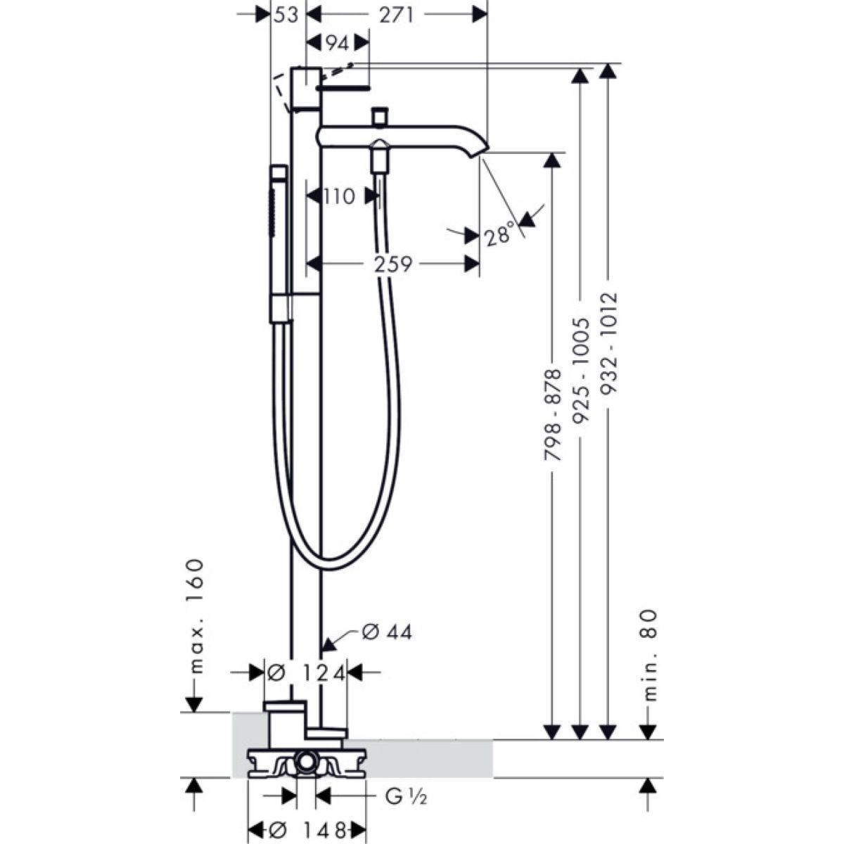 Axor Uno Badewannen- und Duscharmatur freistehend chrom 38442000