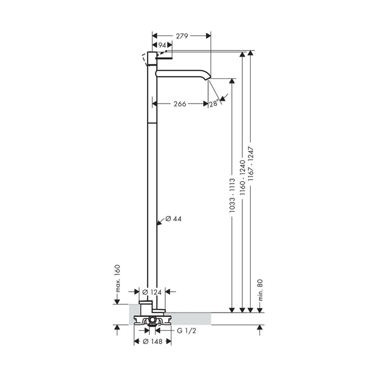 Axor Uno Waschtischarmatur Boden chrom 38037000