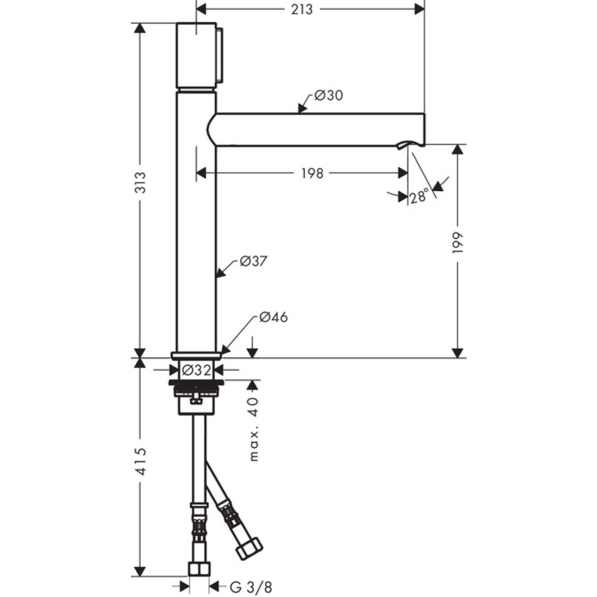 - Auslaufhöhe: 198 mm