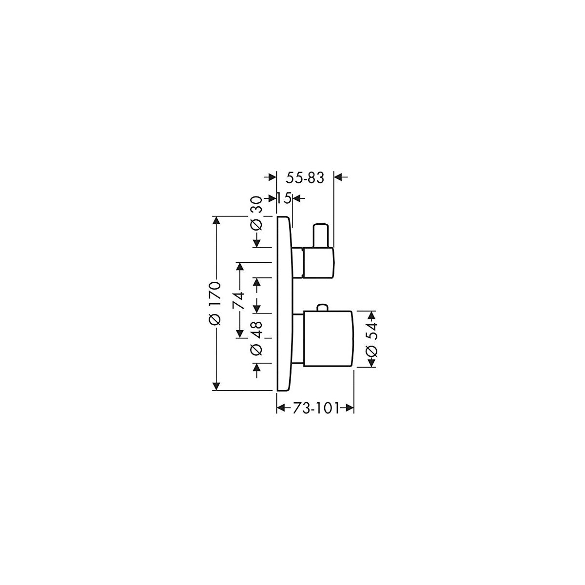 Axor Uno2 Badewannen- und Duscharmatur Unterputz mit Thermostat chrom 38720000