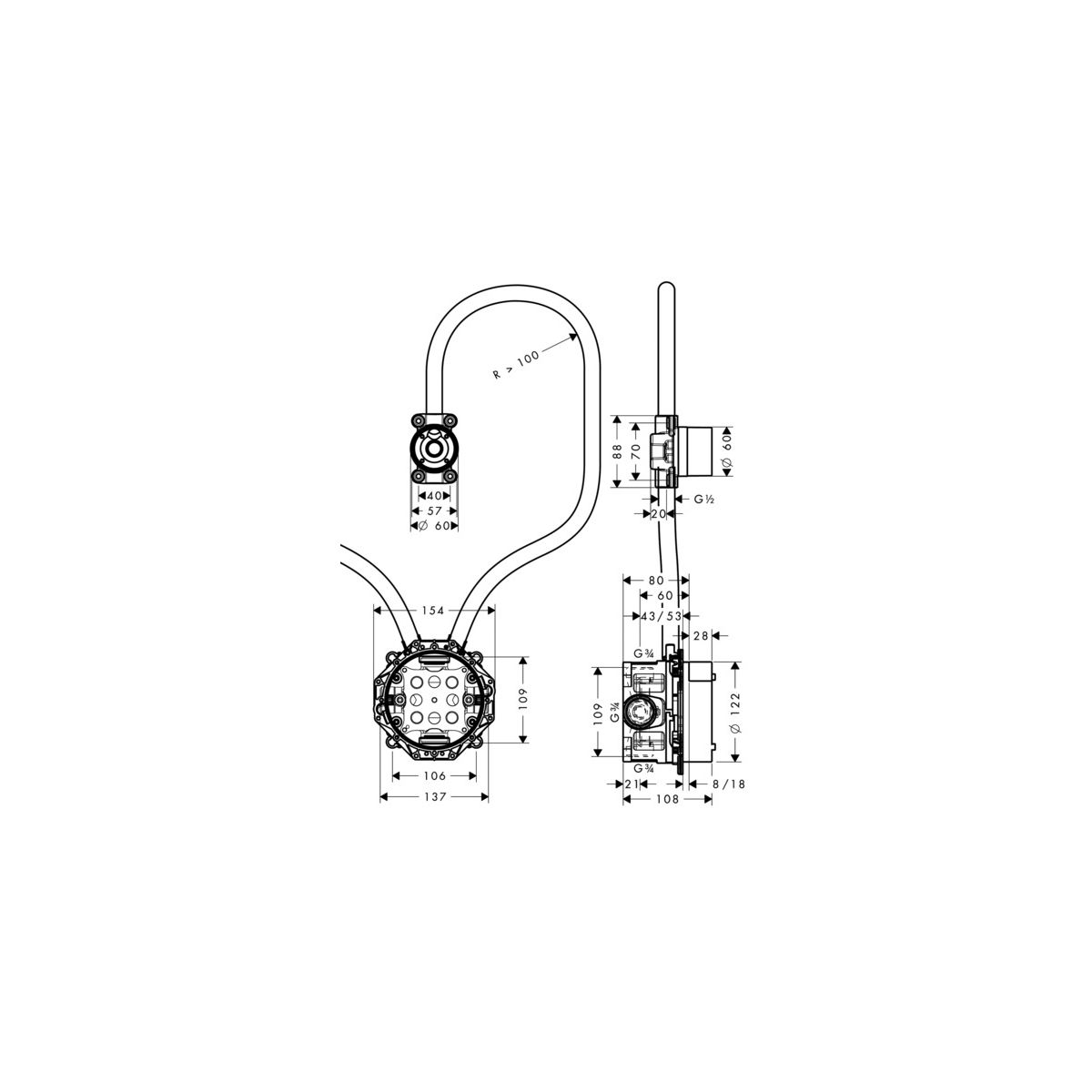 - Im Lieferumfang enthalten: Unterputz-Set, 20-mm-Durchführungsrohr für die Kabelzuführung, iBox Universal mit Absperrventilen