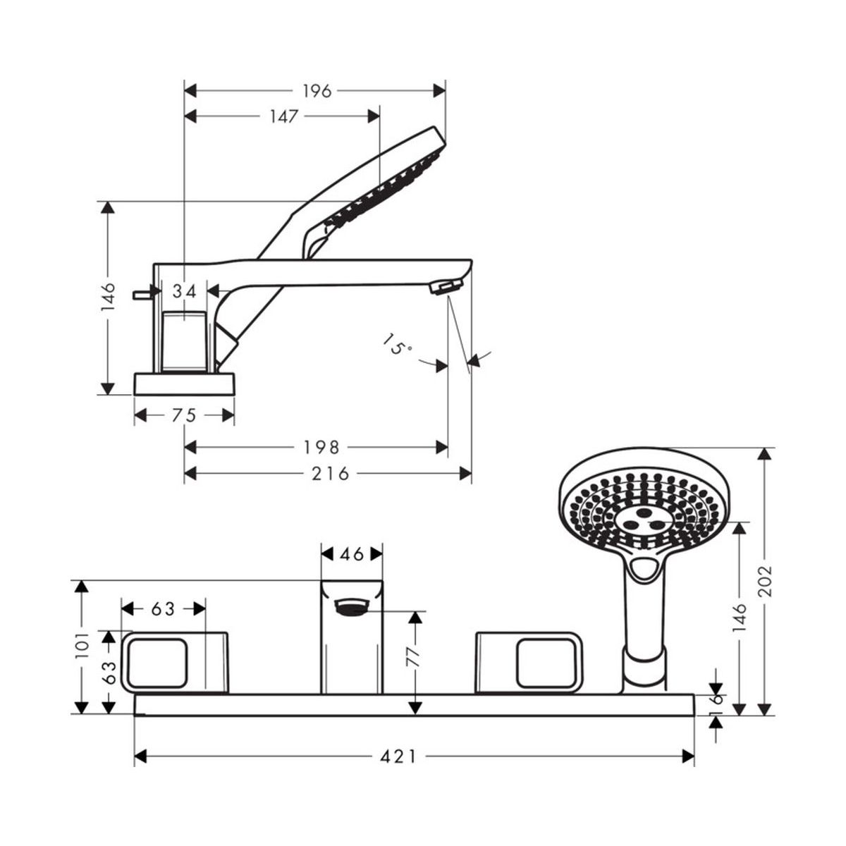 - Im Lieferumfang enthalten: Halterungen, Wannenauslauf