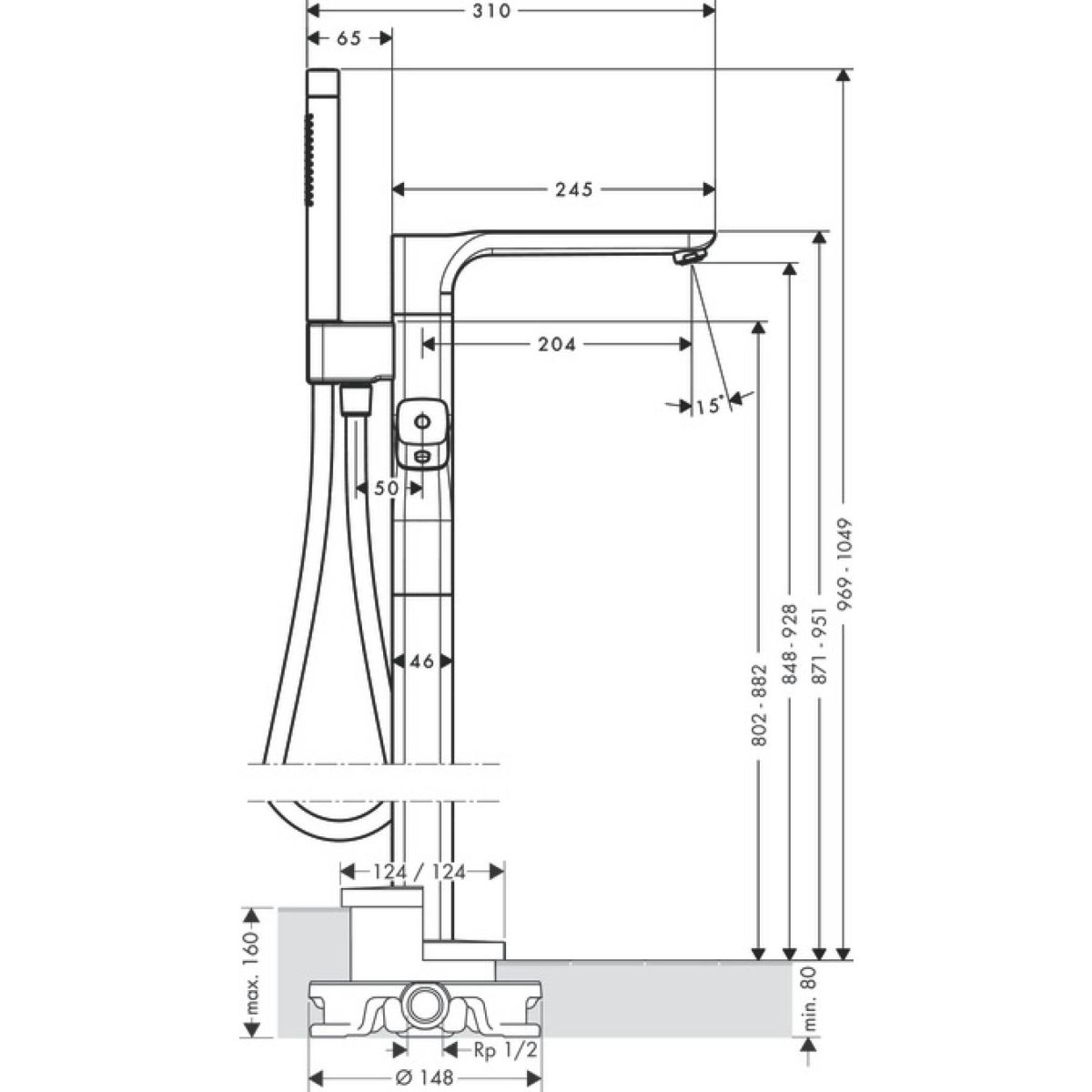 Axor Urquiola Badewannen- und Duscharmatur freistehend mit Thermostat chrom 11422000