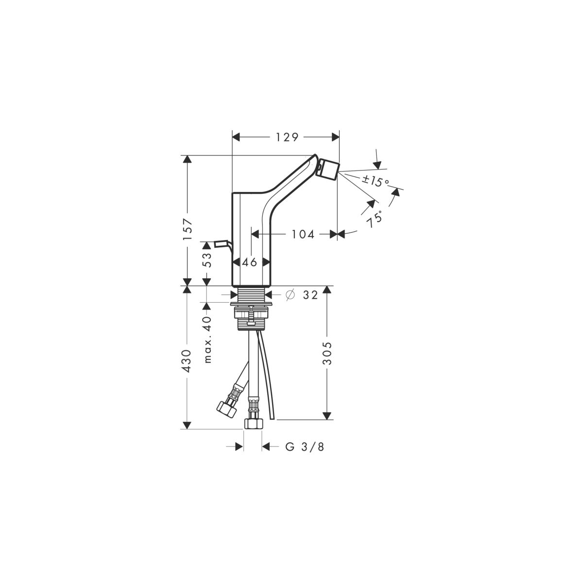 Axor Urquiola Bidet-Wasserhahn stehend stahl 11220800