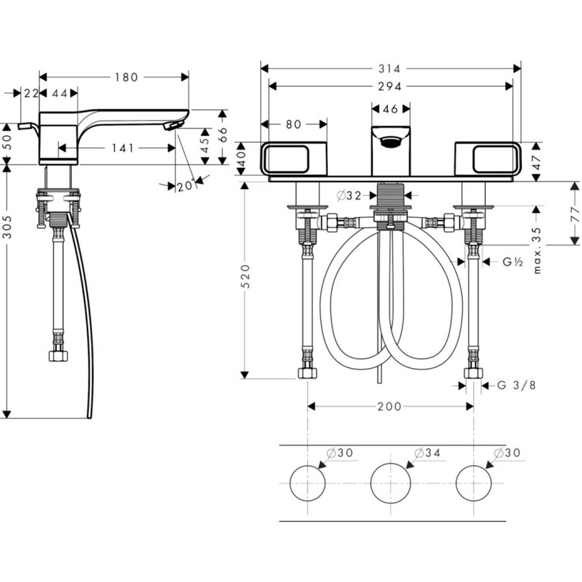 Axor Urquiola Waschtischarmatur Stehend chrom 11040000